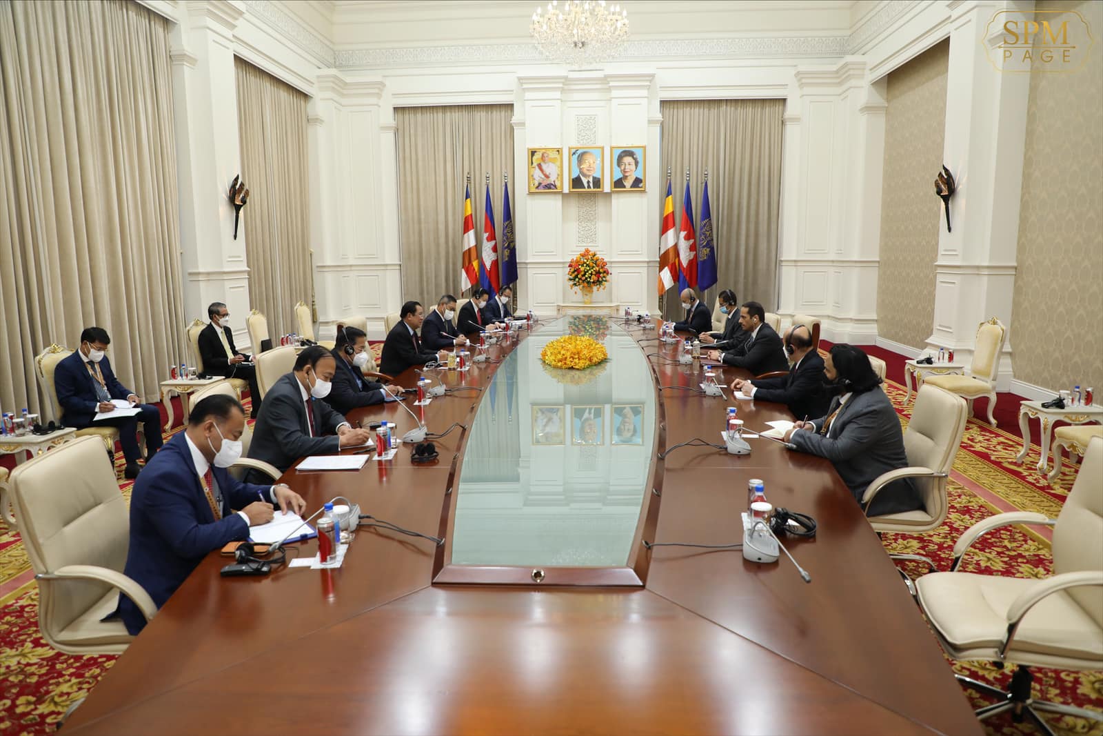 សម្ដេចអគ្គមហាសេនាបតីតេជោ ហ៊ុន សែន នាយករដ្ឋមន្ត្រីនៃព្រះរាជាណាចក្រកម្ពុជា នាល្ងាចថ្ងៃទី០៣ ខែសីហា ឆ្នាំ ២០២២ បានទទួលជួបពិភាក្សាការងារជាមួយឯកឧត្តម Sheikh Mohammed bin Abdulrahman al-Thani ឧបនាយករដ្ឋមន្ត្រី និងជារដ្ឋមន្រ្តីក្រសួងការបរទេសនៃប្រទេសកាតា នៅវិមានសន្តិភាព។