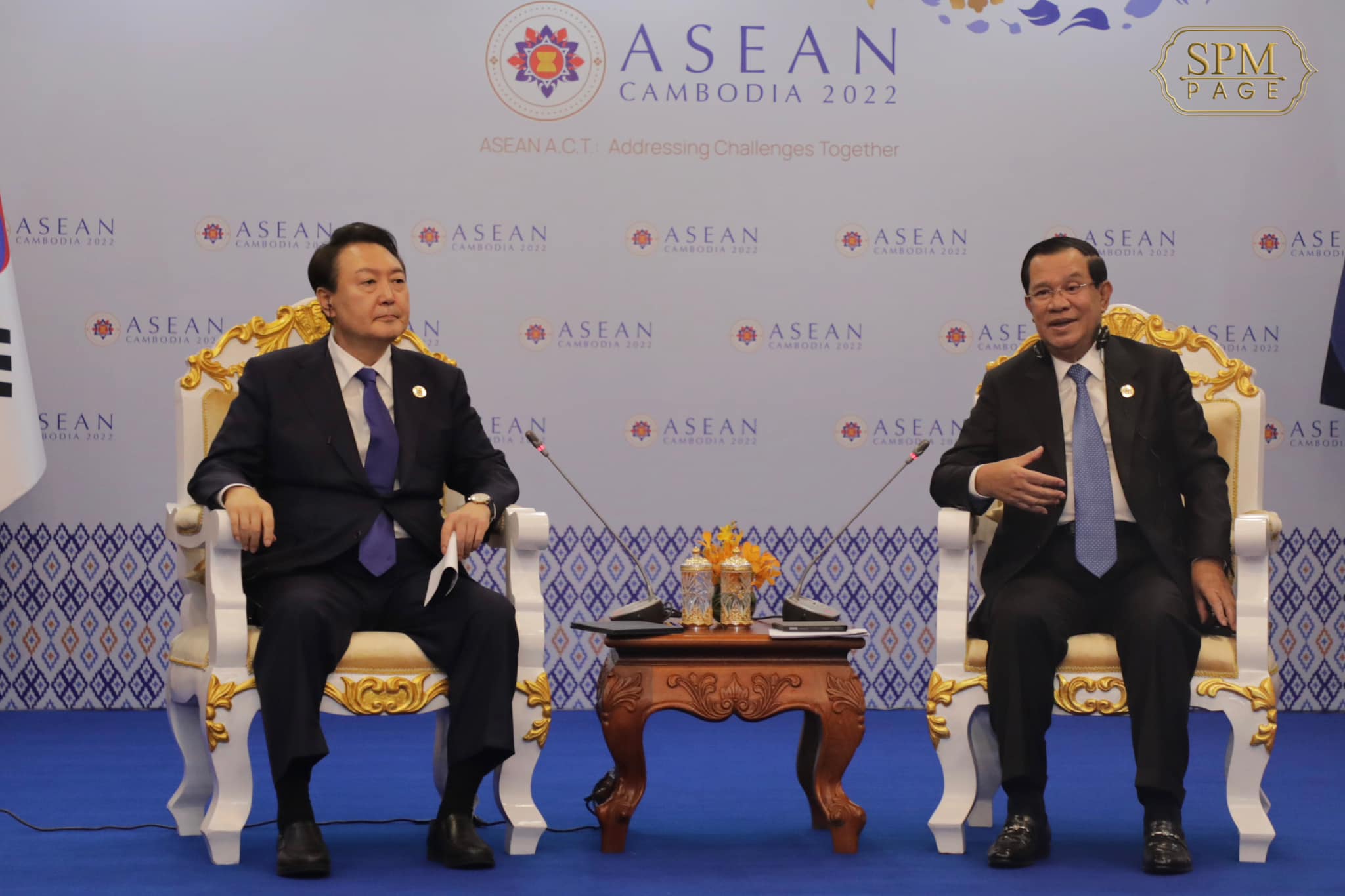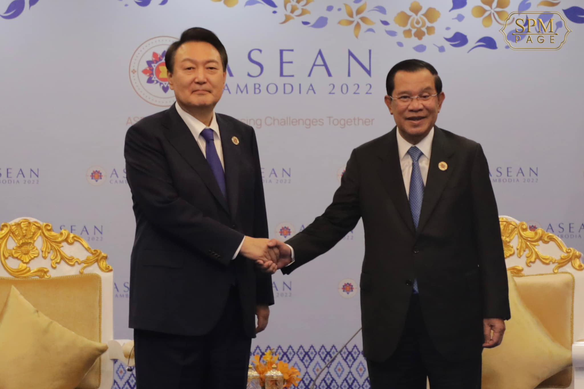 (ភ្នំពេញ)៖ ឯកឧត្តម យូន សកយ៉ល (Yoon Suk-yeol) ប្រធានាធិបតីកូរ៉េខាងត្បូង នឹងជំរុញអ្នកវិនិយោគកូរ៉េ មកកម្ពុជា បន្ថែមទៀតនៅពេលខាងមុខ។ ការលើកឡើងនេះក្នុងឱកាសដែល ប្រធានាធិបតីកូរ៉េខាងត្បូង និងសម្ដេចអគ្គមហាសេនាបតីតេជោ ហ៊ុន សែន នាយករដ្ឋមន្ត្រី នៃព្រះរាជាណាចក្រកម្ពុជា និងជាប្រធានអាស៊ាន បានជួបពិភាក្សាការងារ ក្នុងឱកាសដែល ឯកឧត្តម និងលោកជំទាវ អញ្ជើញចូលរួមក្នុងកិច្ចប្រជុំកំពូល អាស៊ាន-កូរ៉េ ដែលកម្ពុជាធ្វើជាម្ចាស់ផ្ទះ។