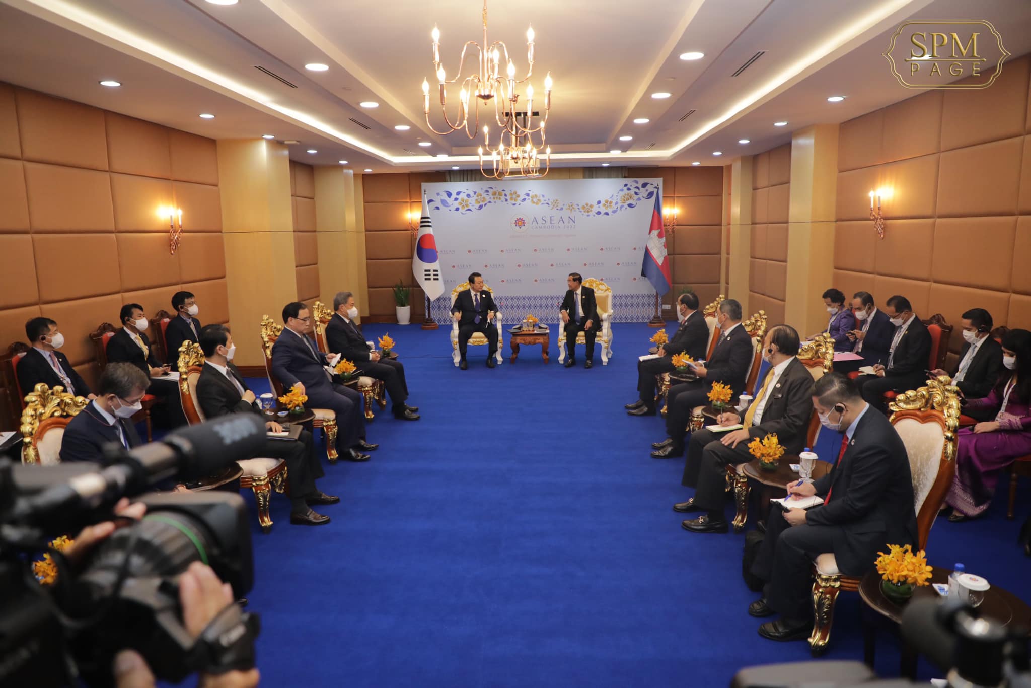 ក្នុងជំនួបនេះ ថ្នាក់ដឹកនាំទាំងពីរបានពិភាក្សាគ្នាដោយយកចិត្តទុកដាក់ ទាំងបញ្ហាតំបន់ផង និងបញ្ហាទ្វេភាគីផង។ ឯកឧត្តម ប្រធានាធិបតីកូរ៉េខាងត្បូង បានសំដែងនូវការគាំទ្រ និងពេញចិត្តចំពោះមជ្ឍភាពអាស៊ាននាពេលនេះ។ ឯកឧត្តម បានសម្ដែងនូវការពេញចិត្តចំពោះកិច្ចសហប្រតិបត្តិការទ្វេភាគីរវាងកូរ៉េខាងត្បូង និងប្រទេសកម្ពុជា ជាពិសេសទៅលើវិស័យពាណិជ្ជកម្ម និងការវិនិយោគ រវាងប្រទេសទាំងពីរ។