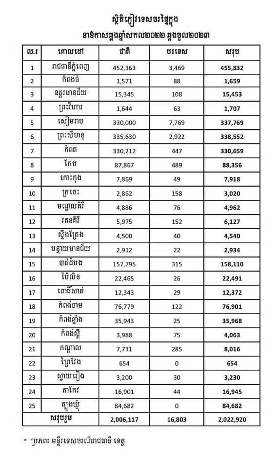 ប្រភព៖ ក្រសួងទេសចរណ៍
