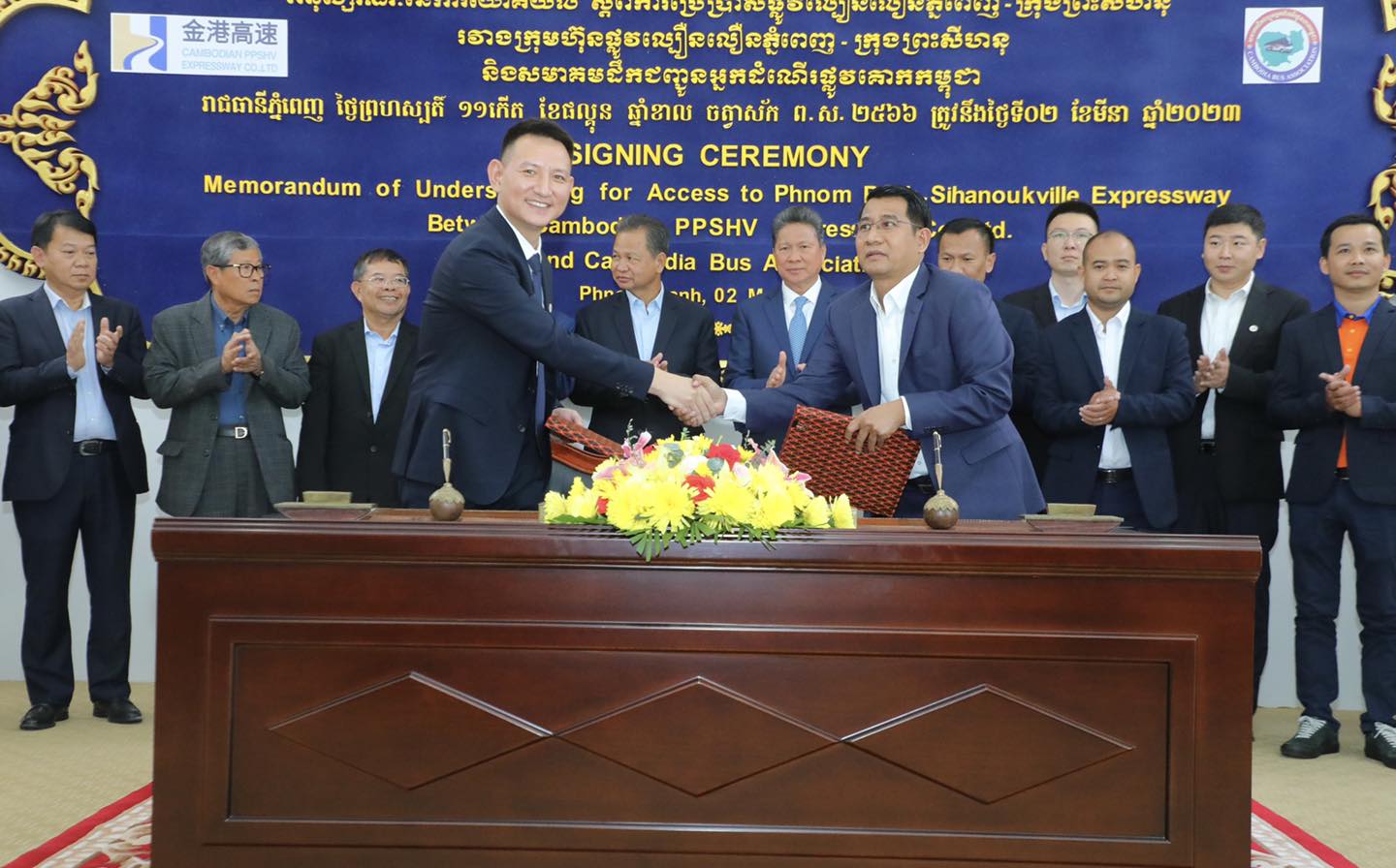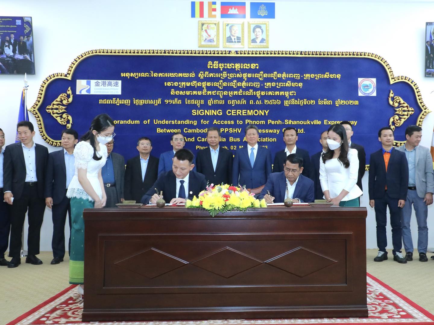 កាលពីថ្ងៃព្រហ្បតិ៍ ទី០២ ខែមីនា ឆ្នាំ២០២៣ ម្សិលមិញនវ ឯកឧត្តមទេសរដ្ឋមន្ត្រី ស៊ុន ចាន់ថុល រដ្ឋមន្ត្រី ក្រសួងសាធារណការ និងដឹកជញ្ជូន បានអញ្ជើញជាអធិបតីភាពដ៏ខ្ពង់ខ្ពស់ ក្នុងពិធីចុះហត្ថលេខាលើអនុស្សរណៈនៃការយោគយល់រវាងក្រុមហ៊ុនផ្លូវល្បឿនលឿនភ្នំពេញ-ក្រុងព្រះសីហនុ (CPEC) ជាមួយនឹងសមាគមដឹកជញ្ជូនអ្នកដំណើរផ្លូវគោកកម្ពុជា (CAMBA) ដោយមានអញ្ជើញការចូលរួមជាសក្ខីភាព ពីសំណាក់ថ្នាក់ដឹកនាំ មន្ត្រីជំនាញពាក់ព័ន្ធ សមាជិកសមាជិកាសមាគម និងអ្នកសារព័ត៌មានជាច្រើនរូប។