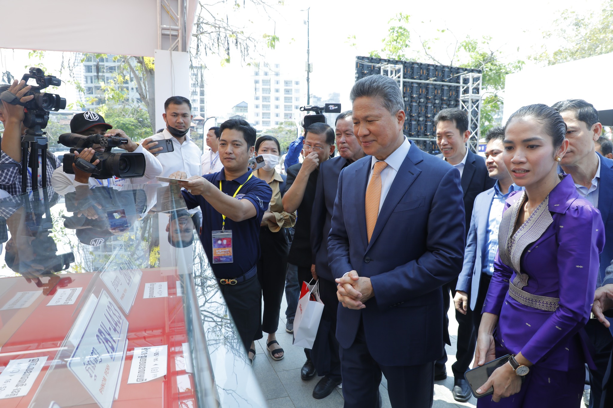សំឡេង « យើងលក់បាន១ម៉ឺន ៦ ពាន់ផ្លាកហើយ បានថវិកាជាតិ ២៨ លានដុល្លារអាមេរិក ចូលថវិកាជាតិ។ ថវិកាជាតិមួយចំនួនសូម ជម្រាបជូនថា បានយកទៅជូន កាកបាទក្រហមជាតិយើង ដើម្បីជួយដល់បងប្អូនប្រជាពលរដ្ឋ ដែលមានតម្រូវការដោយគ្រោះមហន្តរាយ។ល។ អ៊ីចឹងថវិកាមួយចំនួនប្រហែល ៥០ភាគរយ បានបញ្ជូនទៅកាកបាទក្រហមជាតិរបស់យើង» ។