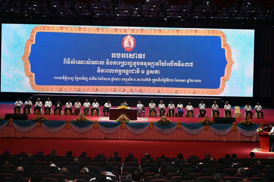 សម្ដេចតេជោនាយករដ្ឋមន្ត្រីបានថ្លែងដូច្នេះ ក្នុងពិធីជួបសំណេះសំណាល និងអបអរសាទរខួបអនុស្សាវរីយ៍លើកទី១៣៧ ទិវាពលកម្មអន្តរជាតិ១ឧសភា ជាមួយសមាគម សហជីព កម្មករ និយោជិត តំណាងមន្ត្រីរាជការ គ្រូបង្រៀន និងតំណាងសមាគមសេដ្ឋកិច្ចក្រៅប្រព័ន្ធប្រមាណ ៣ ៥០០ នាក់ នាព្រឹកថ្ងៃទី ២៣ខែមេសា ឆ្នាំ២០២៣ នៅសាលមហោស្រពកោះពេជ្រ រាជធានីភ្នំពេញ។