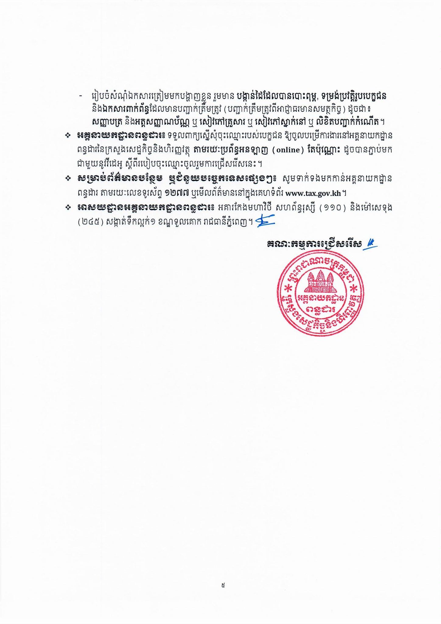 រួសរាន់ឡើង! អគ្គនាយកដ្ឋានពន្ធដារ ប្រកាសជ្រើសរើសបេក្ខជនចំនួន ៩១នាក់ ចូលបម្រើការងារក្នុងក្របខ័ណ្ឌ “ក” ផុតកំណត់ទទួលពាក្យនៅពាក់កណ្ដាលខែក្រោយ