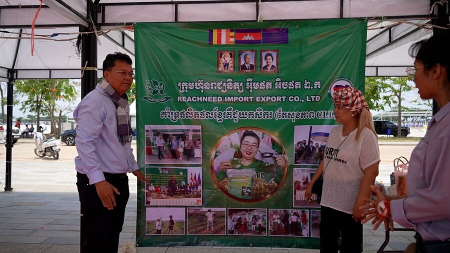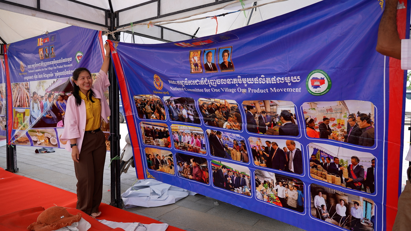 លោកបណ្ឌិត សួង ណយ អគ្គលេខាធិការរងគណៈកម្មាធិការ ជាតិជំរុញចលនា ភូមិមួយ ផលិតផលមួយ នៃទីស្តីការគណៈរដ្ឋមន្ត្រី បានមានប្រសាសន៍ថា ក្នុងព្រឹត្តិការណ៍កម្ពុជាធ្វើជាម្ចាស់ផ្ទះ រៀបចំការប្រកួត កីឡាស៊ីហ្គេមលើកទី៣២ ឆ្នាំ២០២៣នេះ គណៈកម្មាធិការជាតិជំរុញចលនា ភូមិមួយ ផលិតផលមួយ បានរៀបចំស្តង់ចំនួន២០ ហើយមានសហគ្រាស សហគមន៍ សិប្បករ អាជីវករចំនួន៤៥សហគ្រាស បានចូលរួមលក់ និងដាក់តាំងផលិតរបស់ខ្លួនបង្ហាញជូនភ្ញៀវជាតិ និងអន្តរជាតិ។ លោកបានបន្តថា ផលិតផលដែលបានដាក់បង្ហាញនៅពេលនេះ មានដូចជា៖ សម្លៀកបំពាក់ ចំណីអាហារ ភេសជ្ជៈ វត្ថុអនុស្សាវរីយ៍ គ្រឿងសម្អាង និងគ្រឿងចម្លាក់ដែលជាស្នាដៃរបស់កូនខ្មែរ។ សំឡេង៖ «ការតាំងពិព័រណ៍នេះ គឺជាការបង្ហាញពីមុខមាត់របស់ប្រទេសជាតិ ដែលយើងកម្រ នឹងបាន រៀបចំ គឺ៦០ឆ្នាំម្ដង។ យើងចង់បង្ហាញពីសក្តានុពលផលិតផលខ្មែរ បង្ហាញពីវប្បធម៌ អរិយធម៌ខ្មែរ ដើម្បីខ្មែរ និងបរទេសបានស្គាល់និងទិញទៅប្រើប្រាស់ និងបរិភោគដែលខ្មែរធ្វើបាន»។