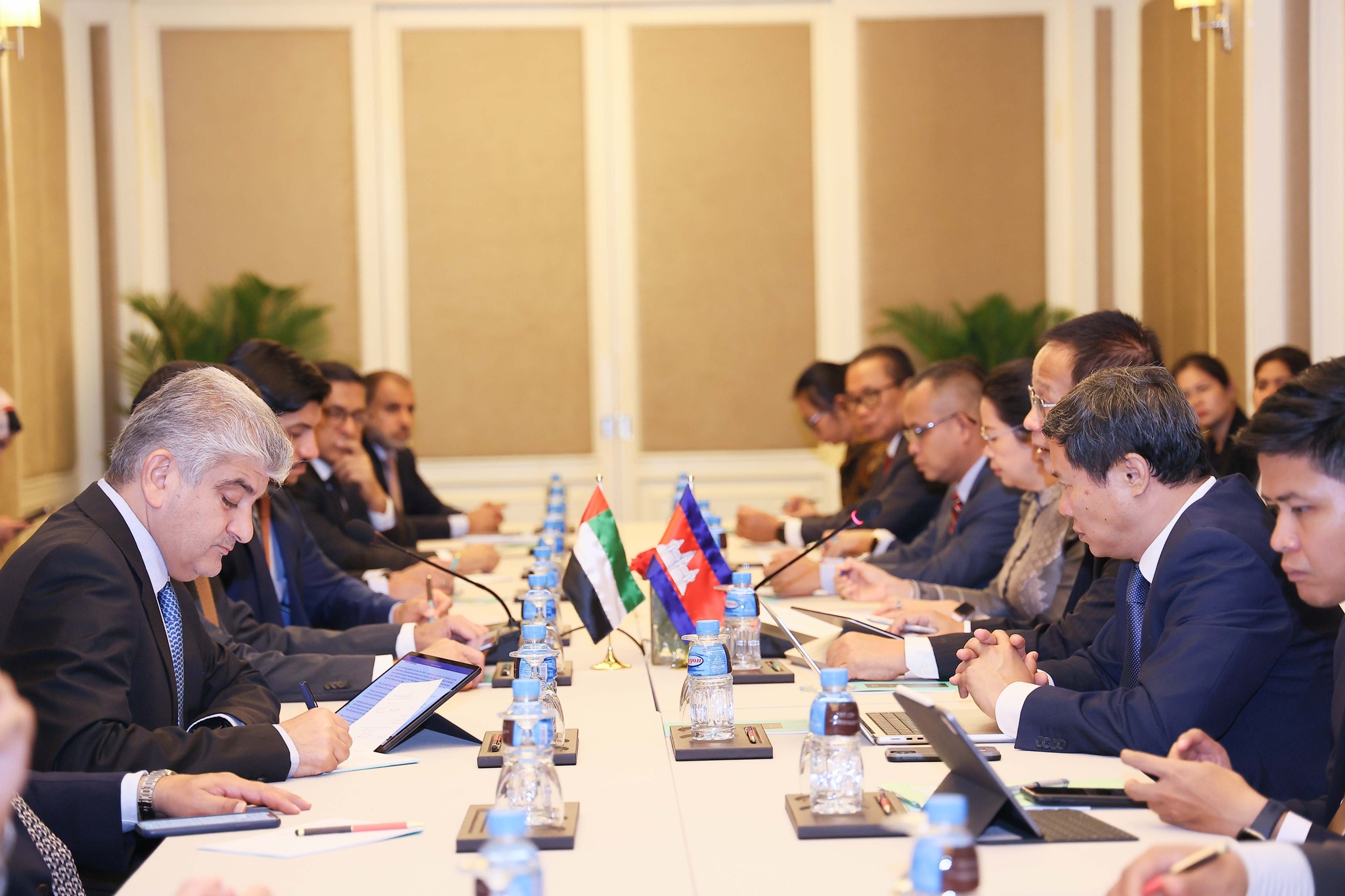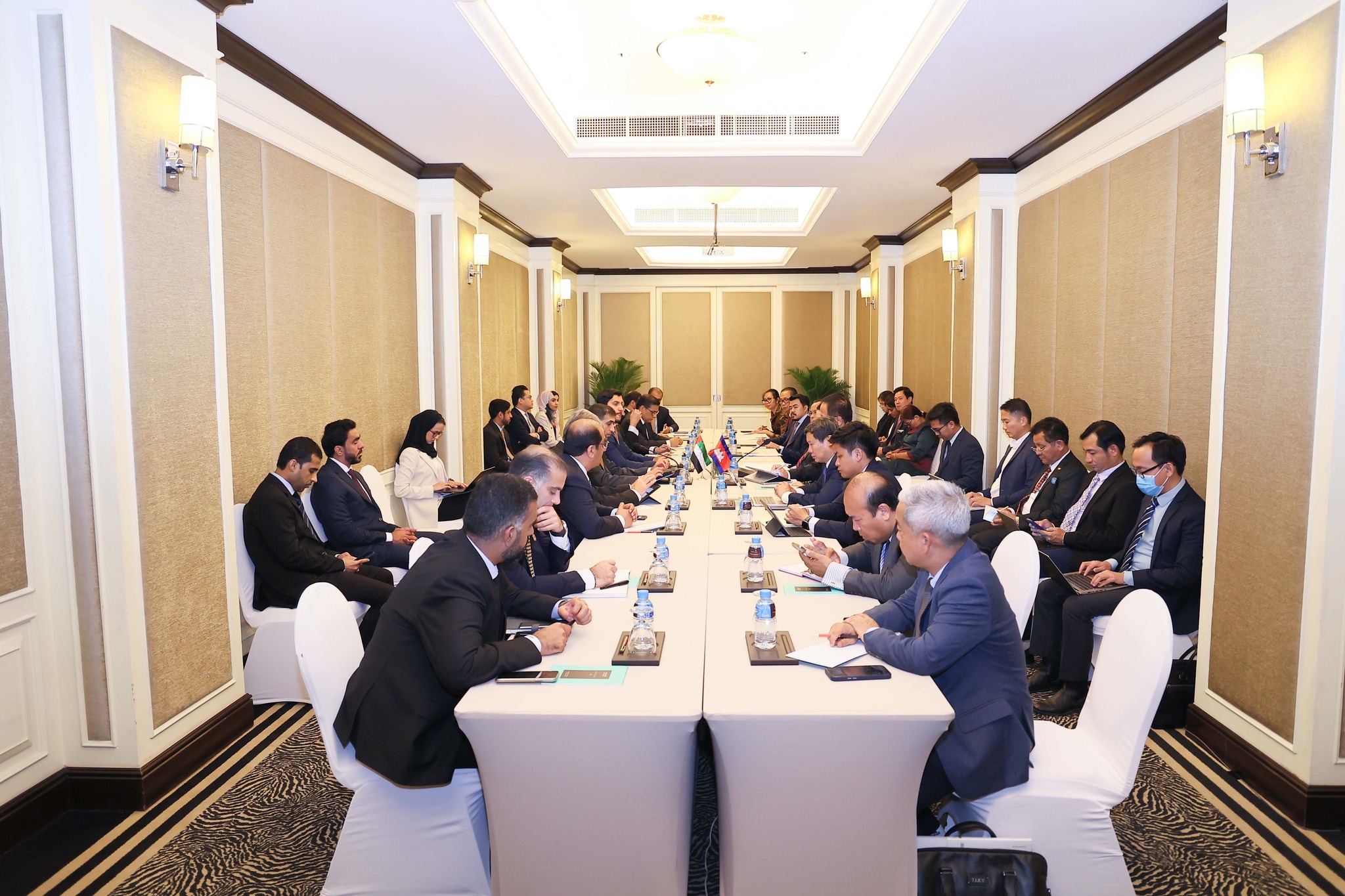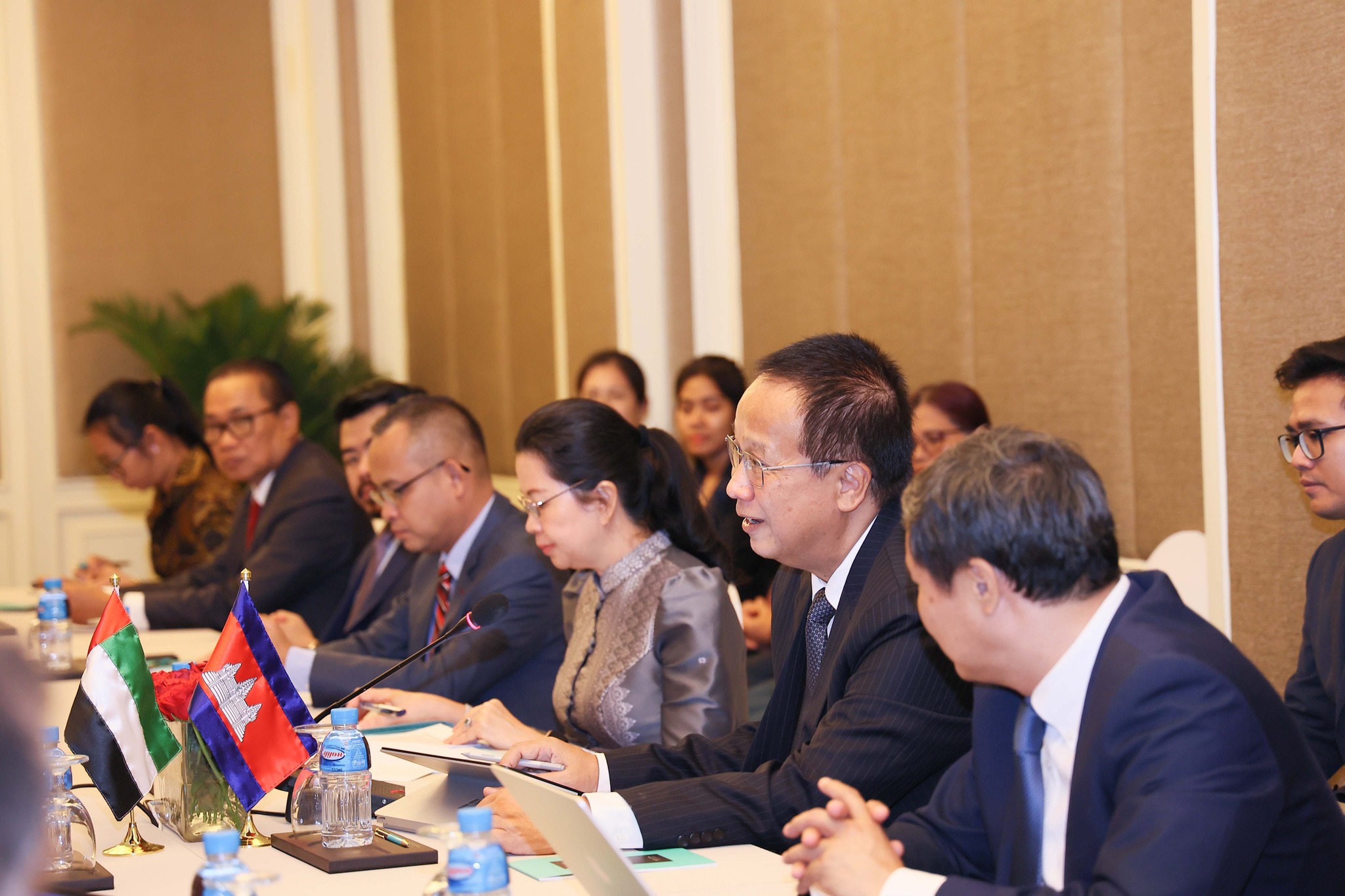 កិច្ចពិភាក្សាការងារនេះ ក៏មានការអញ្ជើញចូលរួមពីមន្រ្តីជាន់ខ្ពស់ ធុរជន និងវិនិយោគិន នៃប្រទេសទាំងពីរ ជាច្រើនរូបផងដែរ។ នៅក្នុងជំនួបនេះ ភាគីទាំងពីរបានសម្តែងនូវក្តីសោមនស្សរីករាយ ដែលដំណើរការចរចាបង្កើតកិច្ចព្រមព្រៀងភាពជាដៃគូសេដ្ឋកិច្ចគ្រប់ជ្រុងជ្រោយរវាងកម្ពុជា និងអេមីរ៉ាតអារ៉ាប់រួម (Cambodia-UAE, Comprehensive Economic Partnership Agreement – CEPA) បានឈានដល់ពិធីចុះហត្ថលេខា។