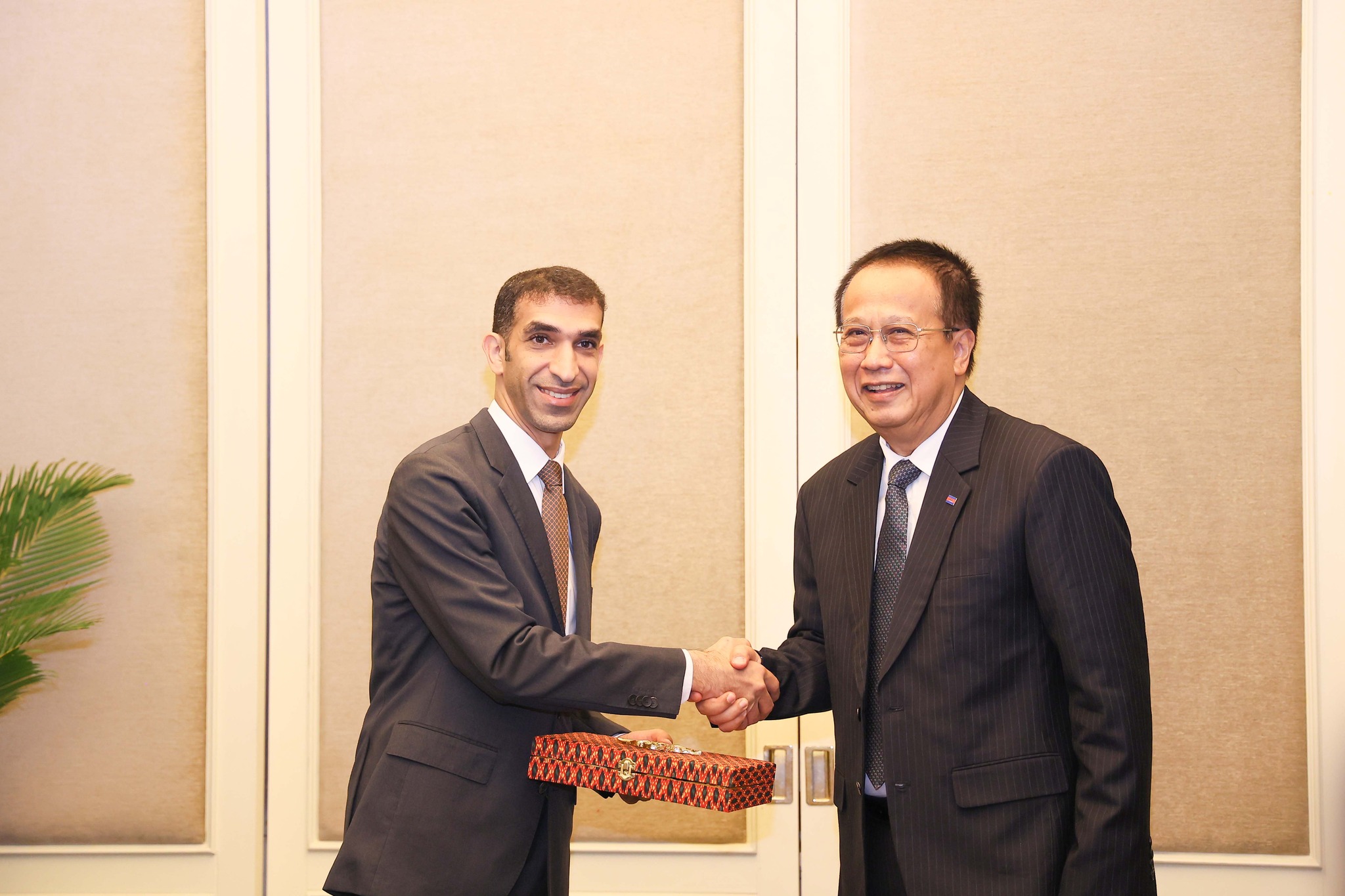 នារសៀលថ្ងៃទី៧ ខែមិថុនា ឆ្នាំ២០២៣ ម្សិលមិញនេះ ឯកឧត្តម ប៉ាន សូរស័ក្តិ រដ្ឋមន្រ្តីក្រសួងពាណិជ្ជកម្មកម្ពុជា និង ឯកឧត្តមបណ្ឌិត ថានី ប៊ីន អាម៉េត អាល់ ហ្សេយូឌី (Thani bin Ahmed Al Zeyoudi) រដ្ឋមន្រ្តីពាណិជ្ជកម្មអន្តរជាតិអេមីរ៉ាតអារ៉ាប់រួម បានជួបសម្តែងការគួរសម និងពិភាក្សាការងារ ដើម្បីពិនិត្យលើលទ្ធភាពក្នុងការបន្តពង្រឹង និងពង្រីកកិច្ចសហប្រតិបត្តិការលើគ្រប់វិស័យ ជាពិសេសវិស័យពាណិជ្ជកម្ម និងវិនិយោគ ឱ្យកាន់តែប្រសើរឡើងថែមទៀត។