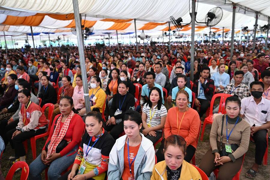 ឯកឧត្តមបណ្ឌិត អ៊ិត សំហេង រដ្ឋមន្ត្រីក្រសួងការងារ និងបណ្តុះបណ្តាលវិជ្ជាជីវៈ បានឱ្យដឹងថា កន្លងទៅសម្ដេចតេជោនាយករដ្ឋមន្ត្រី ធ្លាប់បានអញ្ជើញជួបសំណេះសំណាលជាមួយបងប្អូនកម្មករ និយោជិតនៅខណ្ឌពោធិ៍សែនជ័យនេះចំនួន ១៤ ដងរួចមកហើយ ក្នុងនោះកាលពីឆ្នាំ២០១៧ ចំនួន ៧ដង ដែ លមានកម្មករ និយោជិត ចូលរួមចំនួន ១០ ម៉ឺន ៦ពាន់នាក់ មកពីរោងចក្រ សហគ្រាស ចំនួន៨៨ និងកាលពីឆ្នាំ២០១៨ ចំនួន ៧ដង ដែលមានកម្មករ និយោជិត ចូលរួមចំនួន ១០ម៉ឺន ៧ពាន់នាក់ មកពីរោងចក្រ សហគ្រាស ចំនួន១០០។ ហើយជំនួបថ្ងៃនេះ ជាជំនួបលើកទី១៥ ហើយ ដែលសម្តេចតេជោនាយករ ដ្ឋមន្ត្រី អញ្ជើញជួបសំណេះសំណាលជាមួយបងប្អូនកម្មករ និយោជិត សរុបចំនួន ១៨ ០៣១ នាក់ មកពីរោងចក្រ សហគ្រាស ចំនួន១១ នៅខណ្ឌពោធិ៍សែនជ័យ។ រោងចក្រ សហគ្រាស ចំនួន ១១ ជាប្រភេទរោងចក្រកាត់ដេរចំនួន៧ ផលិតផលធ្វើដំណើរ និងកាបូប ចំនួន ៣ ដេរស្បែកជើងចំនួន ១។ ផលិតផលរបស់រោងចក្រទាំងនេះ គឺនាំចេញទៅទីផ្សារអន្តរជាតិ ដូចជា អឺរ៉ុប អាម៉េរិក កាណាដា និងជប៉ុន ជាដើម។ នៅរាជធានីភ្នំពេញ គិតត្រឹមឆ្នាំ២០២៣ មានរោងច ក្រ សហគ្រាស ចំនួន ៩ ៣១៤ និងមានកម្មករ និយោជិតជាង ៦៦ម៉ឺននាក់។