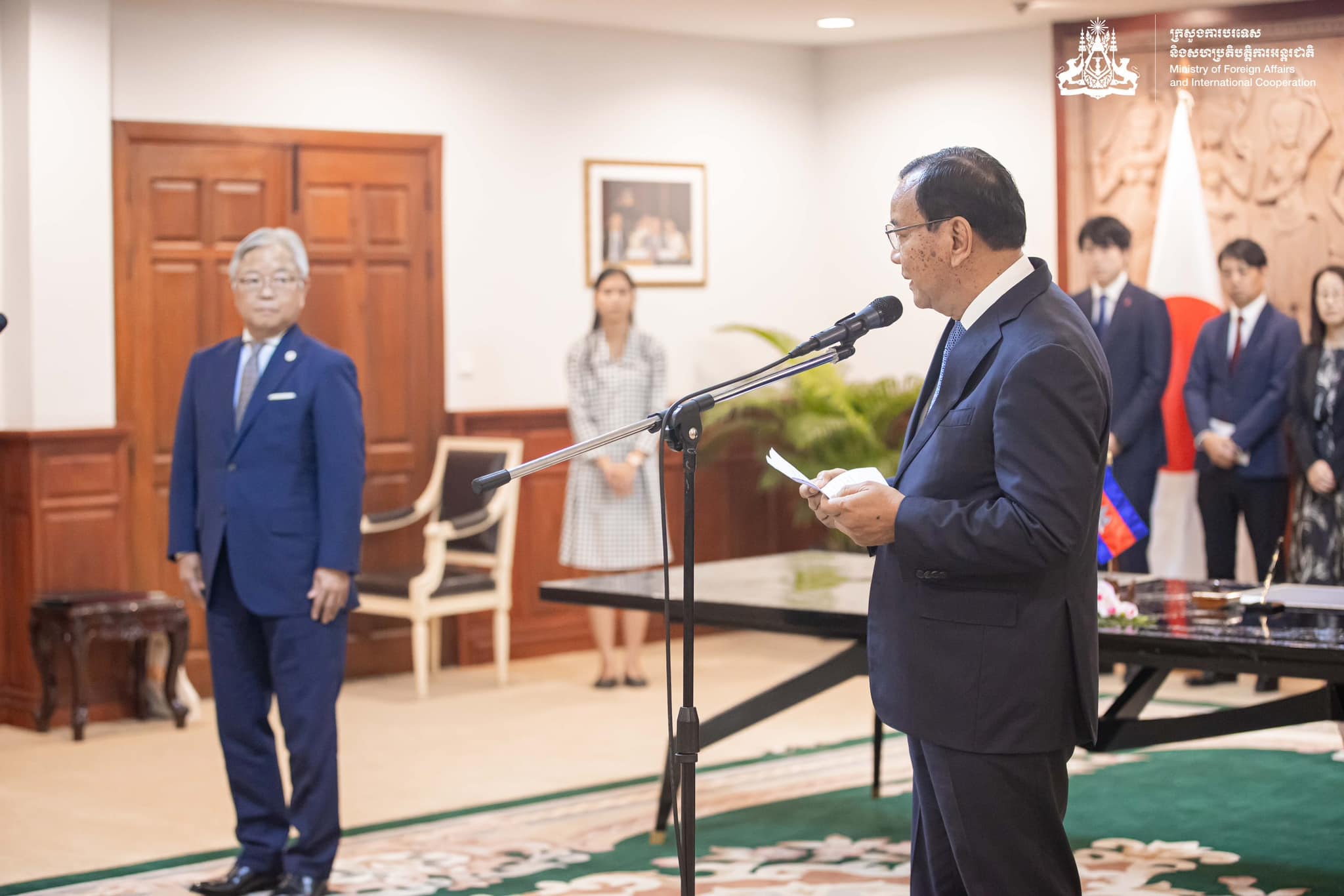 នៅថ្ងៃទី២០ ខែមិថុនា ឆ្នាំ២០២៣ ឯកឧត្ដម ប្រាក់ សុខុន ឧបនាយករដ្ឋមន្រ្ដី រដ្ឋមន្រ្ដីការបរទេស និងសហប្រតិបត្តិការអន្តរជាតិ នៃព្រះរាជាណាចក្រកម្ពុជា និងឯកឧត្ដម UENO Atsushi ឯកអគ្គរាជទូតជប៉ុនប្រចាំកម្ពុជា បានអញ្ជើញចុះហត្ថលេខារួមគ្នា លើលិខិតប្តូរសារ និងឯកសារពាក់ព័ន្ធ ដូចខាងក្រោម៖