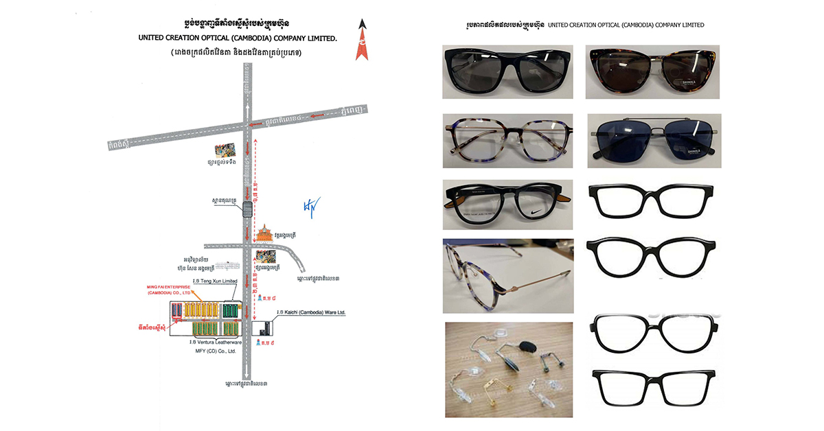 ៣- “UNITED CREATION OPTICAL (CAMBODIA) COMPANY LIMITED” គម្រោងបង្កើតរោងចក្រផលិតវ៉ែនតា និងដងវ៉ែនតាគ្រប់ប្រភេទ ដែលមានទីតាំងវិនិយោគស្ថិតនៅ Block K (ទី១១) និង Block Q (ទី១២) ផ្លូវជាតិលេខ៤១ (ផ្លូវព្រះអង្គឌួង) ភូមិវាលវង់ ឃុំសែនដី ស្រុកសំរោងទង ខេត្តកំពង់ស្ពឺ ក្នុងទុនវិនិយោគប្រមាណ ៥,៨លានដុល្លារអាម៉េរិក និងអាចបង្កើតការងារបានចំនួន ៦៩៦នាក់។