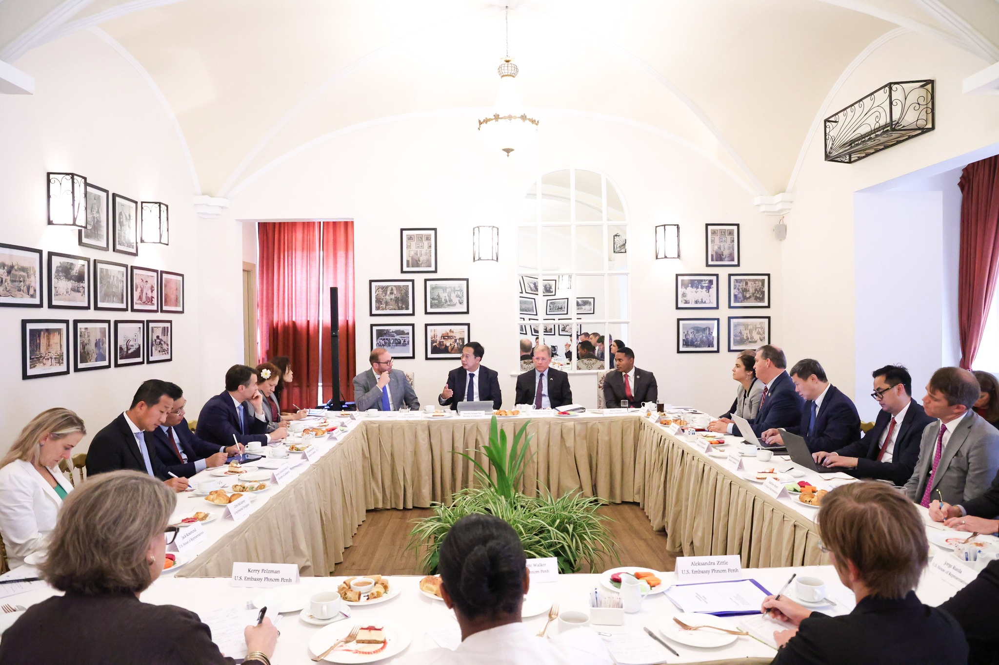 ជាចុងក្រោយ ឯកឧត្តមរដ្ឋមន្ត្រី ក៏បានអំពាវនាវឱ្យក្រុមហ៊ុនអាមេរិកមកបណ្ដាក់ទុនវិនិយោគនៅកម្ពុជាឱ្យបានច្រើនបន្ថែមទៀត ដើម្បីកាត់បន្ថយឱនភាពពាណិជ្ជកម្មរវាងប្រទេសទាំងពីរ ក៏ដូចជាដើម្បីទាញយកផលចំណេញពីគ្នាទៅវិញទៅមក៕