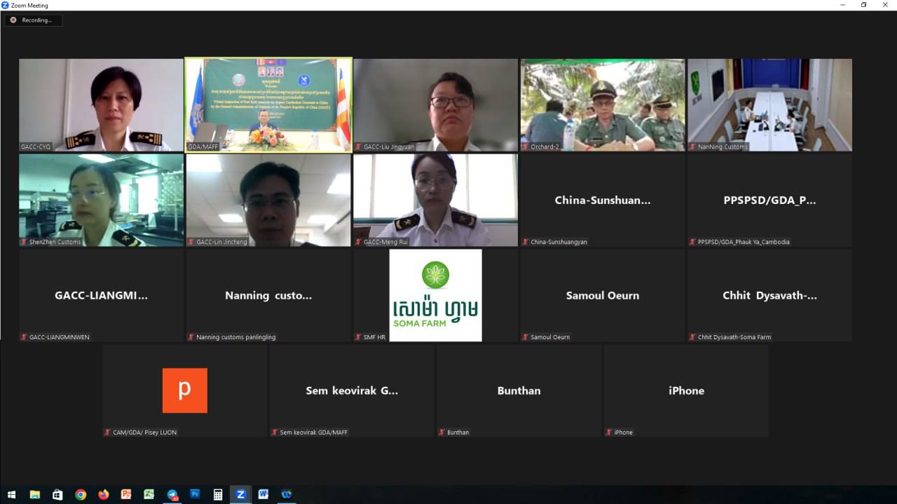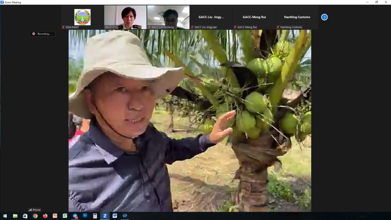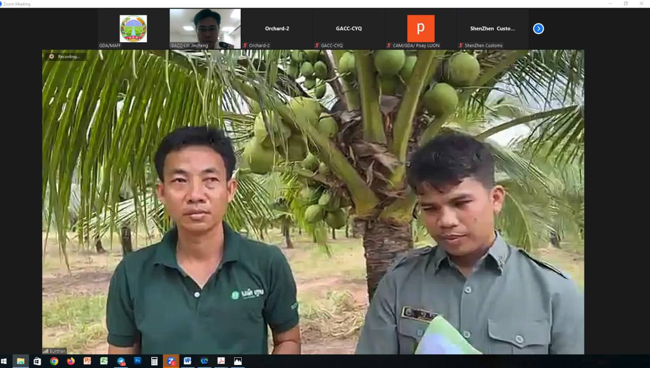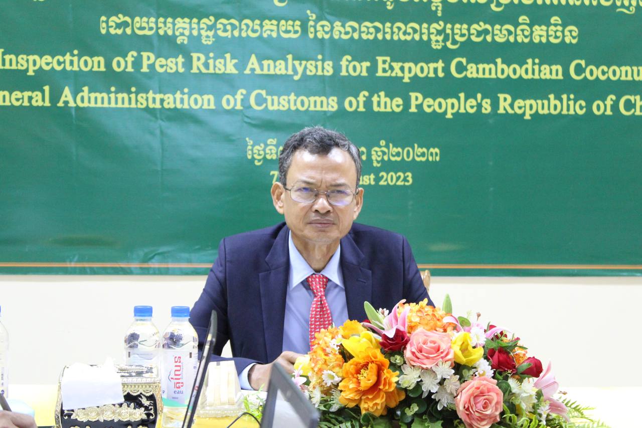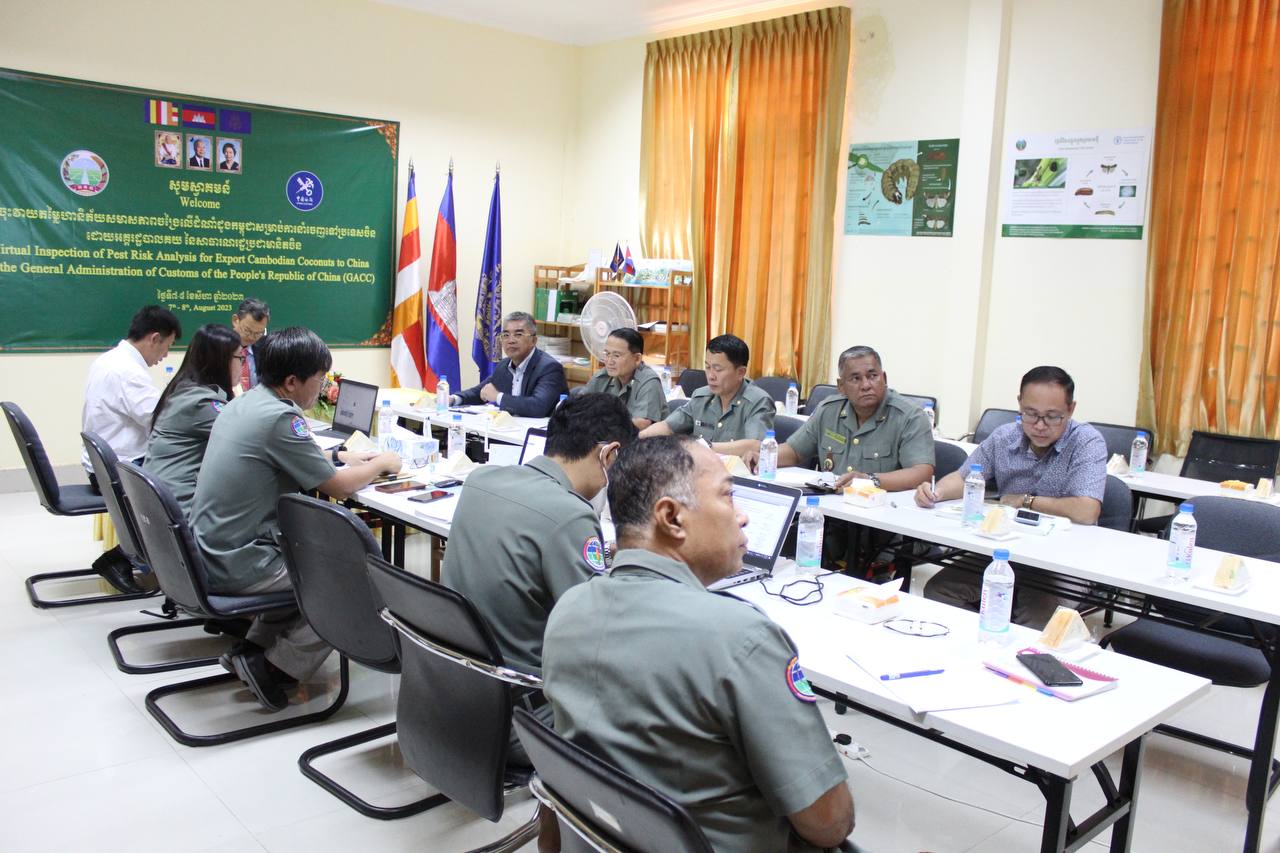 អគ្គនាយកដ្ឋានកសិកម្ម បានឱ្យដឹងថា នាថ្ងៃទី៧ ខែសីហា ឆ្នាំ២០២៣ លោកបណ្ឌិត ម៉ាក់ សឿន អគ្គនាយករងនៃអគ្គនាយកដ្ឋានកសិកម្ម បានដឹកនាំក្រុមការងារនៃនាយកដ្ឋានការពារដំណាំ អនាម័យ និងភូតគាមអនាម័យ បានចូលរួមវាយតម្លៃហានិភ័យសមាសភាពចង្រៃលើដំណាំដូងកម្ពុជាសម្រាប់ការនាំចេញទៅកាន់ប្រទេសចិន តាមរយៈប្រព័ន្ធវីដេអូពីចម្ងាយ។