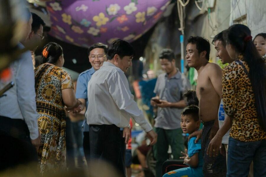 គួរជម្រាបថា នាល្ងាចថ្ងៃទី២៤ ខែសីហា ឆ្នាំ២០២៣ ឯកឧត្តមរដ្ឋមន្ត្រី ហេង សួរ បានបន្តការងារក្រៅផ្លូវការជាមួយកម្មករនិយោជិតនៅតាមបន្ទប់ជួល ម្ដុំផ្សារសាំហាន់ ស្ថិតក្នុងសង្កាត់ទួលសង្កែ១ ខណ្ឌឫស្សីកែវ ដើម្បីបង្កើនការស្វែងយល់អំពីជីវិតរស់នៅប្រចាំថ្ងៃ ក្រោយពេលចប់ម៉ោងការងាររបកម្មករនិយោជិត ក៏ដូចជាអ្នករស់នៅតាមបន្ទប់ជួល។