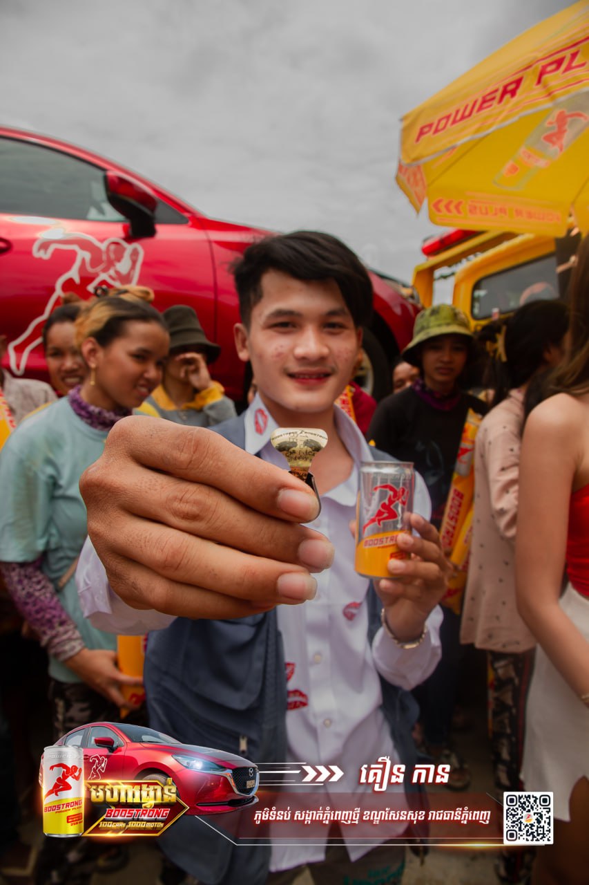 កំលោះវ័យក្មេង មហាសំណាងក្លាយជាម្ចាស់ឡានថ្មីខ្លាញ់គោប៊ូសស្រ្តង មានឈ្មោះ គឿន កាន អាយុ២១ឆ្នាំ មុខរបរកម្មករសំណង់ បច្ចុប្បន្នរស់នៅភូមិទំនប់ សង្កាត់ភ្នំពេញថ្មី ខណ្ឌសែនសុខ រាជធានីភ្នំពេញ។ បើតាមសម្ដីប្អូនប្រុសបានឱ្យដឹងថា គាត់តែងតែញុំាប៊ូសស្រ្តងឆ្ងាញ់ត្រជាក់ៗជាប្រចាំ រហូតត្រូវរង្វាន់ឡានថ្មីខ្លាញ់គោ ១គ្រឿង លេខរៀង០២៧។ គាត់បន្ថែមថា អំឡុងពេលនោះ គ្រាន់តែគាស់ឃើញរូបរង្វាន់ឡានខ្លាញ់គោភ្លាម គាត់សប្បាយចិត្តយ៉ាងខ្លាំង ដល់ថ្នាក់ភ្លេចខ្លួនលោតពីលើរន្ទាកម្ពស់ប្រមាណ ២ម៉ែត្រ ហើយស្រែកហ៊ោផ្អើលពេញមួយការដ្ឋានសំណង់។