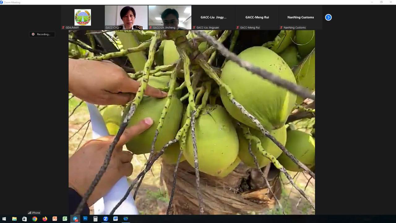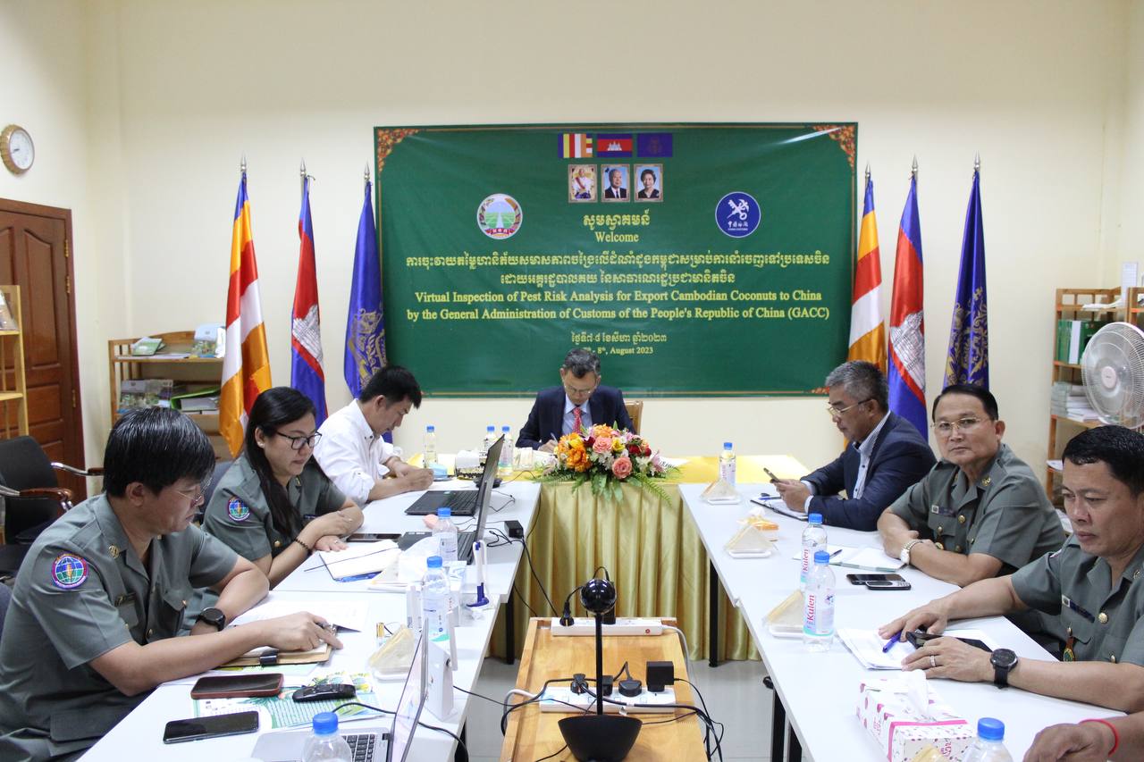 គួររម្លឹកផងដែរថា ដំណាំដូងរបស់កម្ពុជា ត្រូវបានវាយតម្លៃហានិភ័យសមាសភាពចង្រៃ ដោយអគ្គរដ្ឋបាលគយ នៃសាធារណរដ្ឋប្រជាមានិតចិន (GACC) ដែលដឹកនាំដោយលោកស្រី Chen Yongqing មន្រ្តីគយជាន់ខ្ពស់ប្រចាំខេត្តក្វាងចូវ ក្រុមការងារជំនាញនៃអគ្គនាយកដ្ឋានកសិកម្ម និងតំណាងស្ថានទូតចិនប្រចាំប្រទេសកម្ពុជាដឹកនាំដោយ Dr.Wang Xiangshe មន្រ្តីជាន់ខ្ពស់ស្ថានទូតចិនប្រចាំនៅកម្ពុជាទទួលបន្ទុកការងារកសិកម្ម ដែលបានប្រព្រឹត្តទៅចំនួន ២ថ្ងៃ ចាប់ពីថ្ងៃទី៧ ដល់ថ្ងៃទី៨ ខែសីហា ឆ្នាំ២០២៣ ដើម្បីឈានដល់ការរៀបចំនិងការចុះហត្ថលេខាលើពិធីសារស្ដីពីលក្ខខណ្ឌតម្រូវភូតគាមអនាម័យសម្រាប់ការនាំចេញផ្លែដូងស្រស់ពីកម្ពុជាទៅកាន់ប្រទេសចិន៕