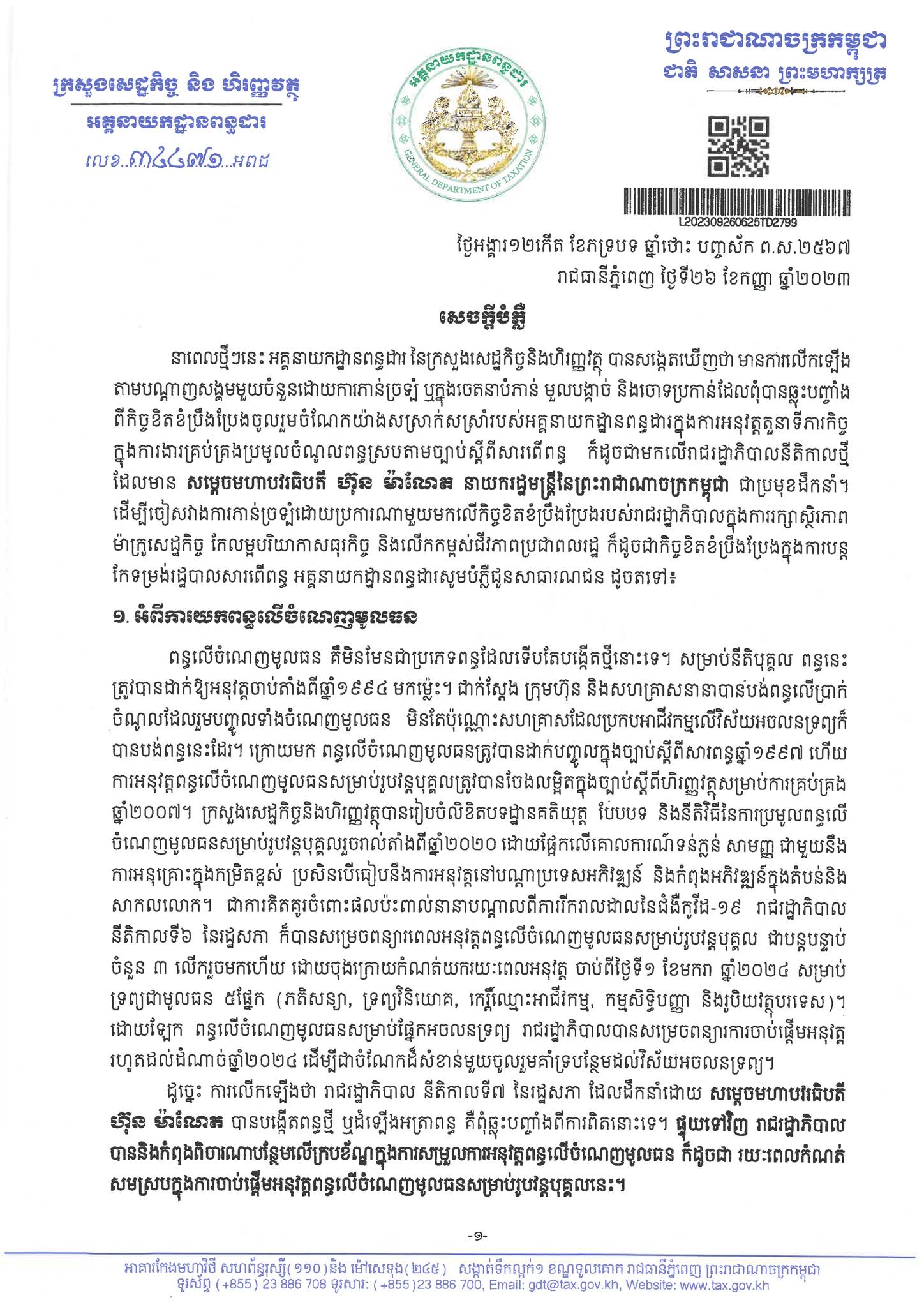 ប្រភព៖ អគ្គនាយកដ្ឋានពន្ធដារ នៃក្រសួងសេដ្ឋកិច្ច និងហិរញ្ញវត្ថុ