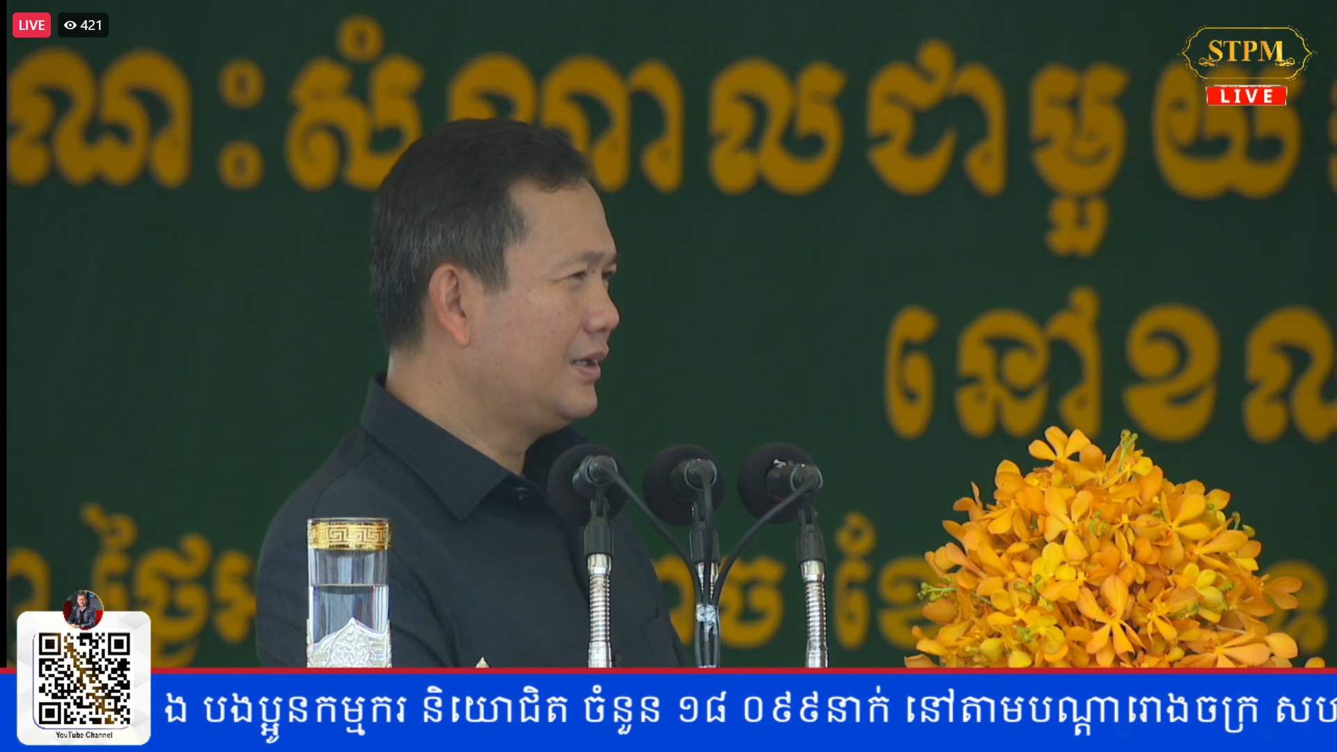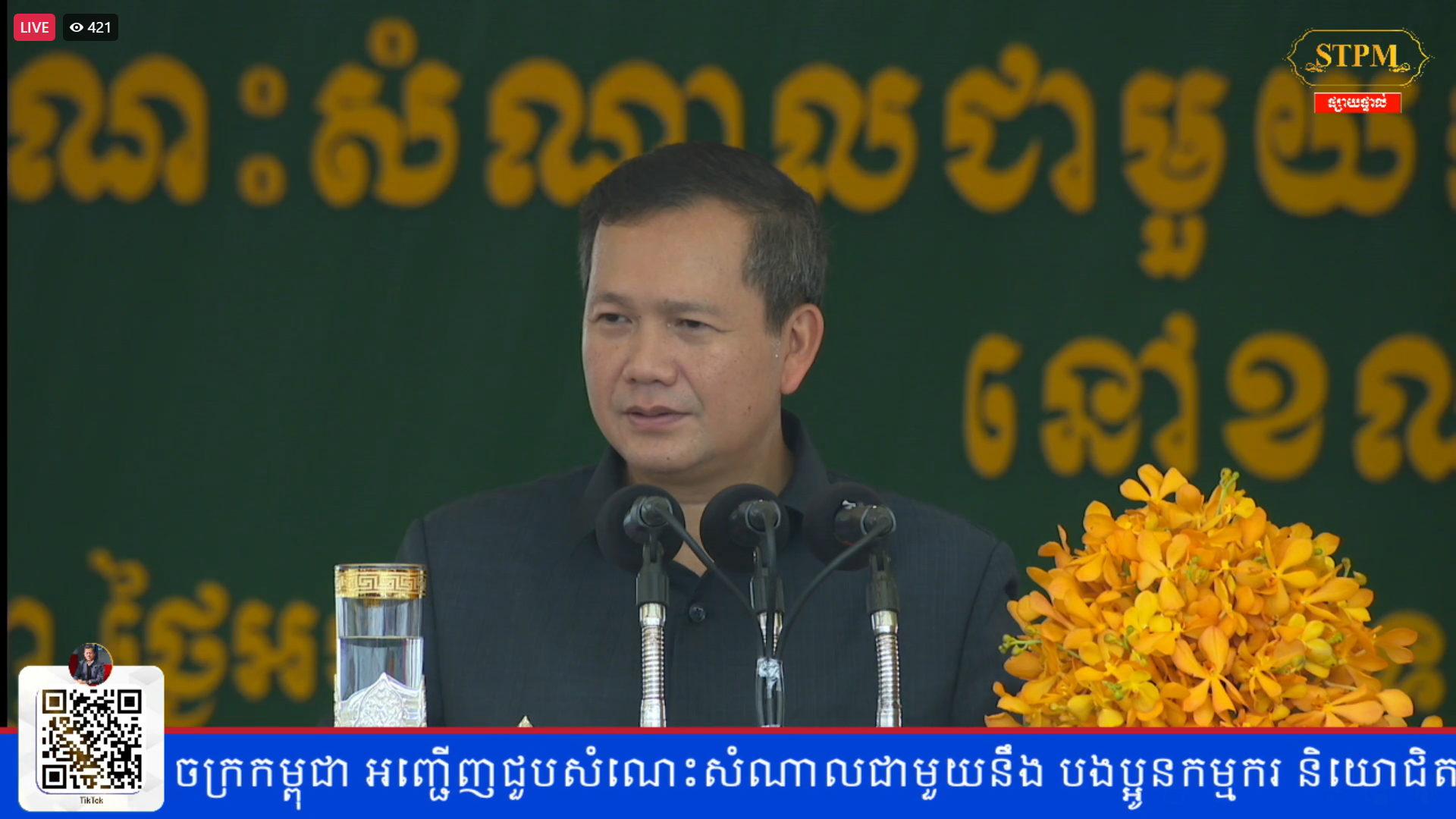 សម្តេចមហាបវរធិបតី ហ៊ុន ម៉ាណែត នាយករដ្ឋមន្ត្រីនៃព្រះរាជាណាចក្រកម្ពុជា បានលើកឡើងដូច្នេះនៅក្នុងអញ្ជើញជួបសំណេះសំណាលជាមួយនឹង បងប្អូនកម្មករ និយោជិត ចំនួន ១៨ ០៩៩នាក់ នៅតាមបណ្តារោងចក្រ សហគ្រាស ដែលមានមូលដ្ឋានក្នុងខណ្ឌមានជ័យ និងខណ្ឌដង្កោ។