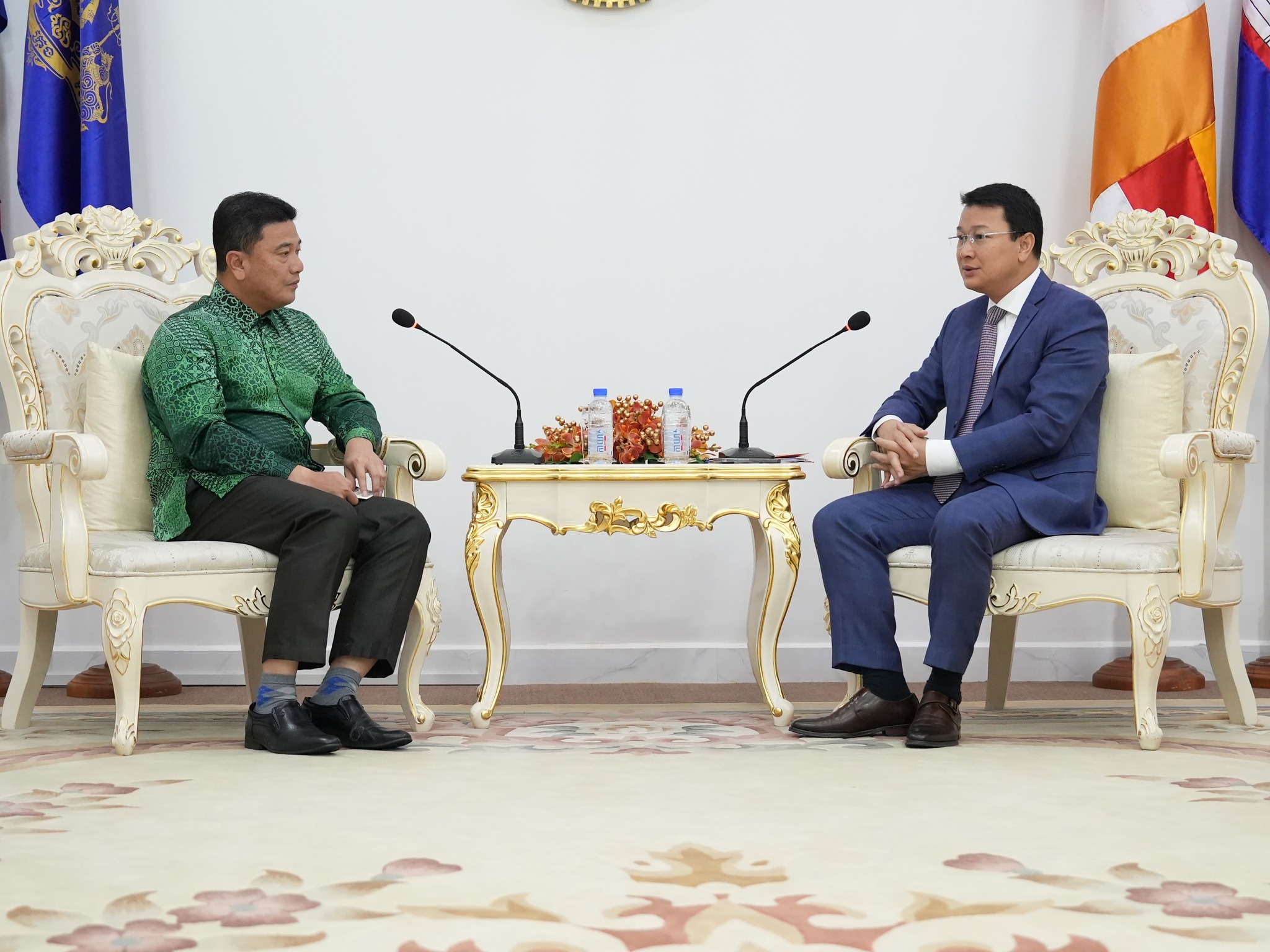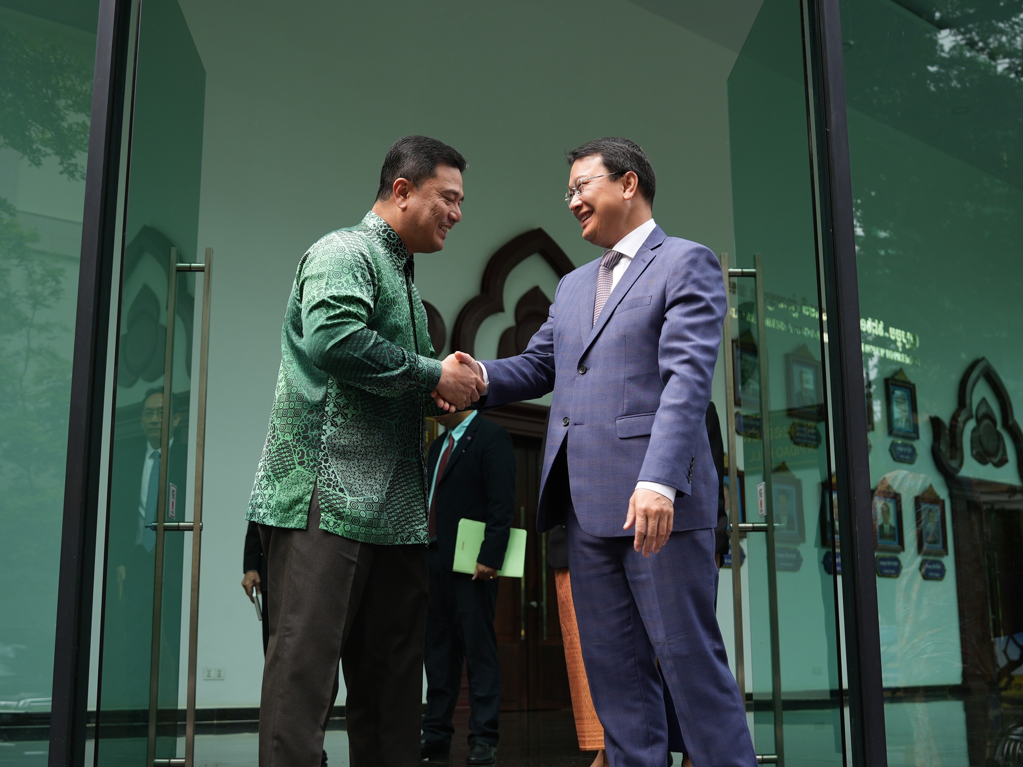ឯកឧត្តម ឌិត ទីណា រដ្ឋមន្ត្រីក្រសួងកសិកម្ម រុក្ខាប្រមាញ់ និងនេសាទ និងថ្នាក់ដឹកនាំ ទទួលជួបសម្តែងការគួរសមជាមួយ ឯកឧត្តម Datuk Eldeen Husaini Mohd Hashim ឯកអគ្គរដ្ឋរាជទូតម៉ាឡេសុី ប្រចាំនៅព្រះរាជាណាចក្រកម្ពុជា នៅទីស្តីការក្រសួងកសិកម្ម រុក្ខាប្រមាញ់ និងនេសាទ កាលពីព្រឹកថ្ងៃទី០២ ខែតុលា ឆ្នាំ២០២៣។