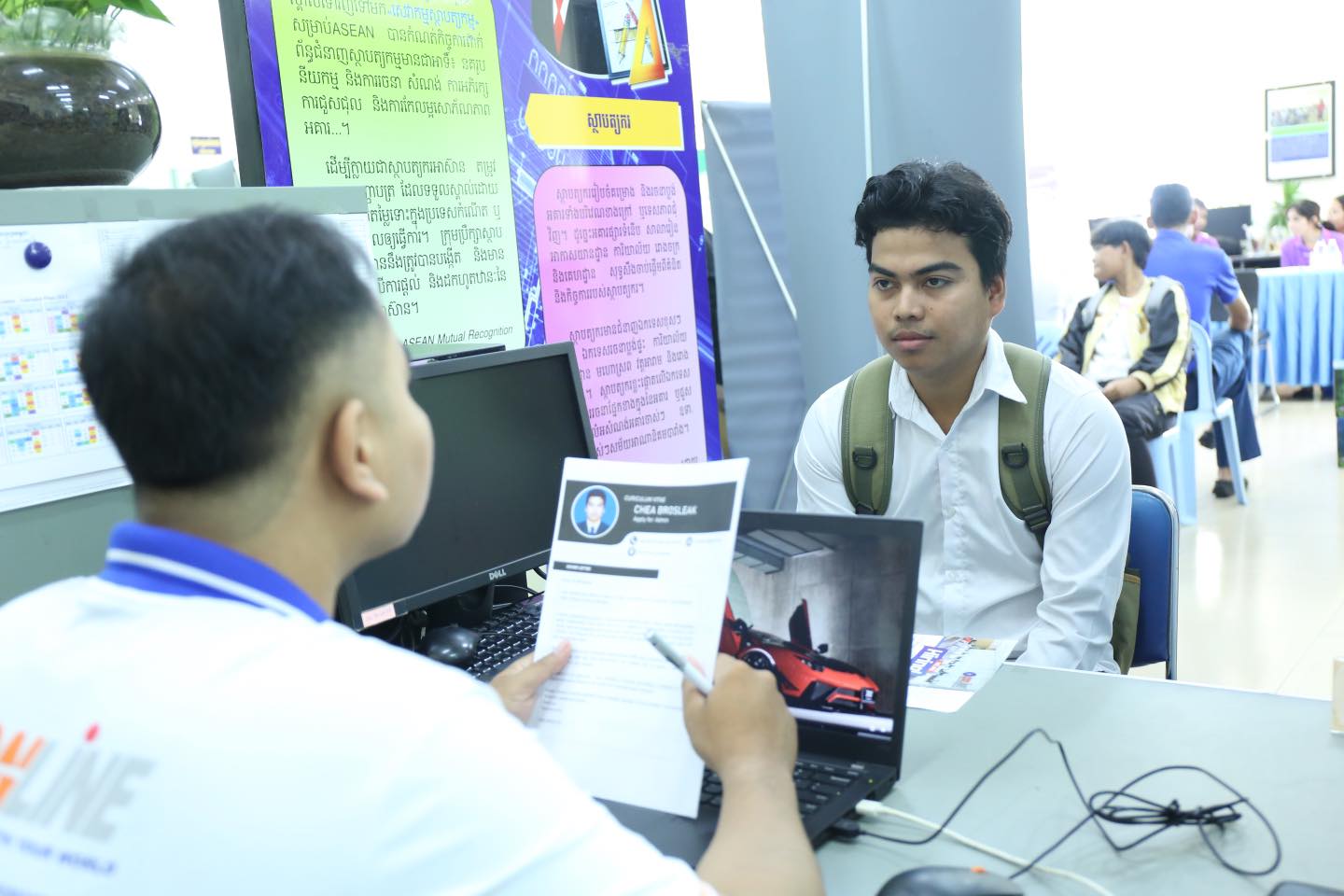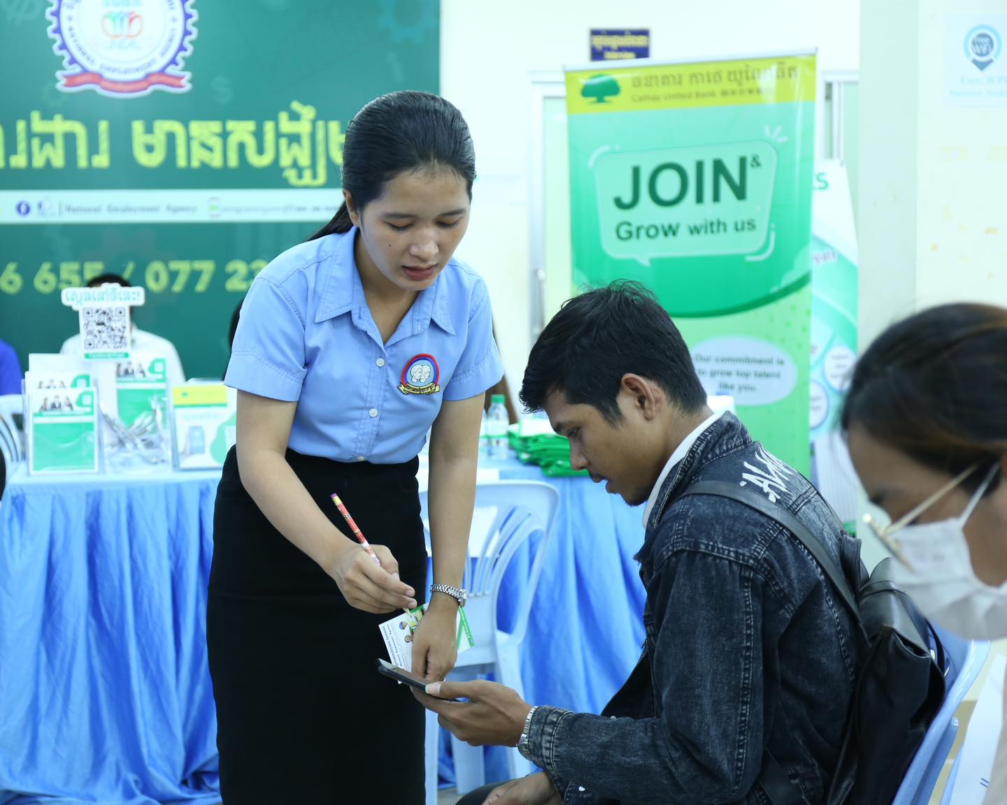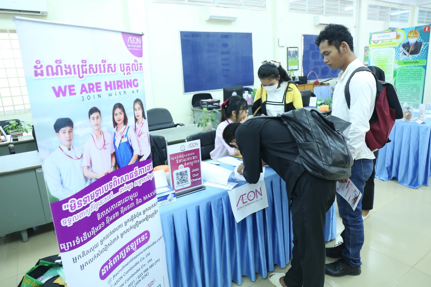 ដូច្នេះ យុវជន សិស្ស/និស្សិត និងអ្នកកំពុងតែស្វែងរកការងារធ្វើ ឬចង់ផ្លាស់ប្តូរការងារ អាចចូលរួមដាក់ពាក្យ និងសម្ភាសផ្ទាល់ជាមួយតំណាងបុគ្គលិកផ្នែកធនធានមនុស្សរបស់ក្រុមហ៊ុន និងរោងចក្រទាំងនោះបាន ចាប់ពីម៉ោង ៨:០០ព្រឹក ដល់ម៉ោង ០៥:០០ល្ងាច នៅអគារ NEA ស្ថិតក្នុងបរិវេណក្រសួងការងារ និងបណ្តុះបណ្តាលវិជ្ជាជីវៈ។