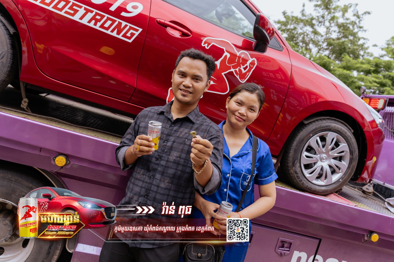 មេចុងភៅកំពូលសំណាង ក្លាយជាម្ចាស់ឡានខ្លាញ់គោពីប៊ូសស្រ្តងលេខរៀង ០៣២ មានឈ្មោះ វ៉ាន់ ពុធ អាយុ ៣១ឆ្នាំ និងប្រពន្ធឈ្មោះ ឈិន ទីម អាយុ ៣១ឆ្នាំ បច្ចុប្បន្នរស់នៅភូមិមួយឧសភា ឃុំកំពង់កណ្ដាល ក្រុងកំពត ខេត្តកំពត។ បើតាមសម្ដីរបស់បងប្រុស វ៉ាន់ ពុធ បានឱ្យដឹងថា គាត់ចូលចិត្តញុំាប៊ូសស្រ្តងត្រជាក់ៗជាប្រចាំ ព្រោះប៊ូសស្រ្តងមានរសជាតិឆ្ងាញ់ ញុំារហូតដល់ថ្ងៃមានលាភសំណាងធំត្រូវរង្វាន់ឡានខ្លាញ់គោ ១គ្រឿង ហើយក៏ខលមកក្រុមហ៊ុនដែលកំពុងប្រគល់រង្វាន់ឡានដល់បងប្រុស ស្រៀវ ចិត្រ និងបងស្រី ស៊ុន វី ដែលជាម្ចាស់ឡានលេខរៀង០១៩ ឱ្យមកពិនិត្យក្រវិលកំប៉ុងគាត់ភ្លាមៗតែម្ដង។