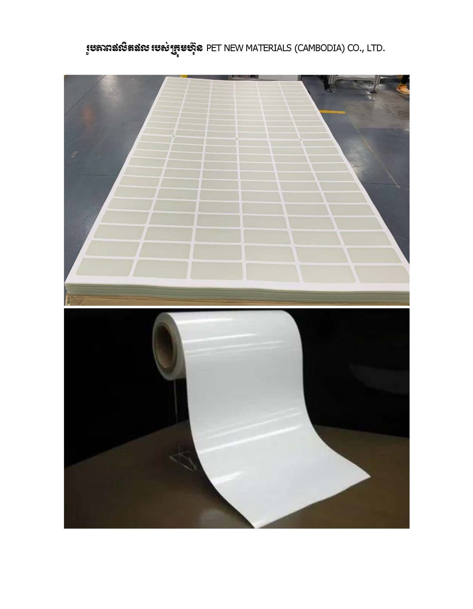 ៤-“PET NEW MATERIALS (CAMBODIA) CO., LTD.” គម្រោងបង្កើតរោងចក្រផលិតគ្រឿងបន្សំបន្ទះសូឡា ដែលមានទីតាំងវិនិយោគស្ថិតនៅភូមិព្រៃពង្រ ឃុំសំបូរ ស្រុកសំរោងទង ខេត្តកំពង់ស្ពឺ ក្នុងទុនវិនិយោគប្រមាណ ៥,៨ លានដុល្លារអាម៉េរិក និងអាចបង្កើតការងារបានចំនួន ១៥១កន្លែង។