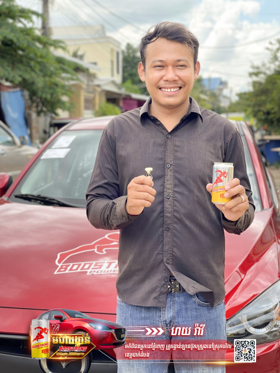 បងប្រុស ហយ រ៉ាវី មានអាយុ 26ឆ្នាំ សព្វថ្ងៃបម្រើការនៅក្រុមហ៊ុនកម្ចាត់សត្វល្អិត និងមានទីលំនៅភូមិក្រុងថ្មី សង្កាត់គោកឃ្លាង ខណ្ឌសែនសុខ រាជធានីភ្នំពេញ។ អតិថិជនកំពូលសំណាងពីប៊ូសស្រ្តងរូបនេះបាននិយាយថាឱ្យតែគាត់អស់កម្លាំង ងងុយគេង មិនស្រឡះមុខ គឺដឹងតែញុំាប៊ូសស្រ្តងត្រជាក់ៗហើយ ដូចពេលទៅដើរលេងនៅបាត់ដំបងអ៉ីចឹង គាត់ចូលចាក់សាំងផង ទិញប៊ូសស្រ្តងញុំាប៉ូវកម្លាំងផង រួចបន់សុំត្រូវរង្វាន់ឡាន ស្រាប់តែគាស់ផាច់ត្រូវរង្វាន់ឡានមែន ធ្វើឱ្យគាត់រំភើបចិត្តជាខ្លាំងក៏ស្រែកហ៊ោផ្អើលពេញហ្គារ៉ាសសាំង នៅស្រុកបវិល ខេត្តបាត់ដំបង។