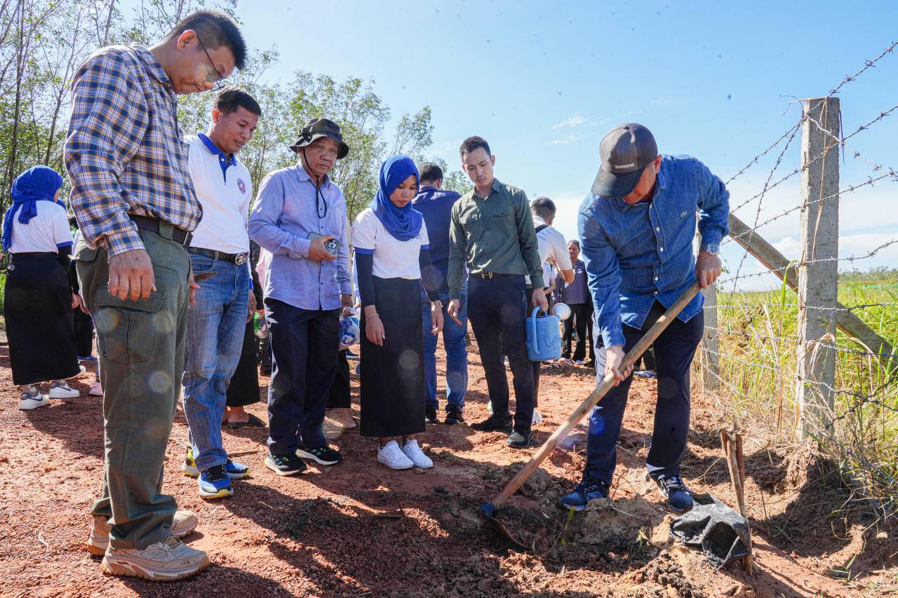 ឯកឧត្តមបណ្ឌិត បានឱ្យដឹងបន្ថែមទៀតថា កាលពីវេលាម៉ោង៨ព្រឹក ថ្ងៃសុក្រ ទី០៣ ខែវិច្ឆិកា ឆ្នាំ២០២៣ ឯកឧត្តមព្រមទាំងភរិយា កូនចៅបុគ្គលឹកកម្មករ សិស្សានុសិស្សបានចូលរួមជាមួយអាជ្ញាធរដែនដីខេត្តព្រះសីហនុ ដឹកនាំដោយឯកឧត្តម គួច ចំរេីន អភិបាលខេត្ត រួមជាមួយមន្ត្រីរាជការក្រោមឱវាទប្រមាណជាជាង ៣០០នាក់ បានរួមសហការគ្នាដាំដេីមត្នោតចំនួន ១.០០០ដេីមជាលេីកទីមួយ នៅអមសងខាងបណ្តោយផ្លូវល្បឿនលឿនត្រង់គីឡូម៉ែត្រលេខ១៥៧ ឃុំកែវផុស ស្រុកស្ទឹងហាវ ខេត្តព្រះសីហនុ ។ ហើយពេលនេះក្រុមអ្នកបច្ចេកទេសបាននិងកំពុងតែបណ្តុះកូនត្នោតចំនួន ១៤.០០០ដេីម ទុកសម្រាប់ដាំនៅរដូវធ្លាក់ភ្លៀងដេីមឆ្នាំ ២០២៤ ខាងមុខនេះ យេីងនឹងដាំបន្ថែមទៀតក្នុងចន្លោះ ៥ម៉ែត្រមួយដេីម ។