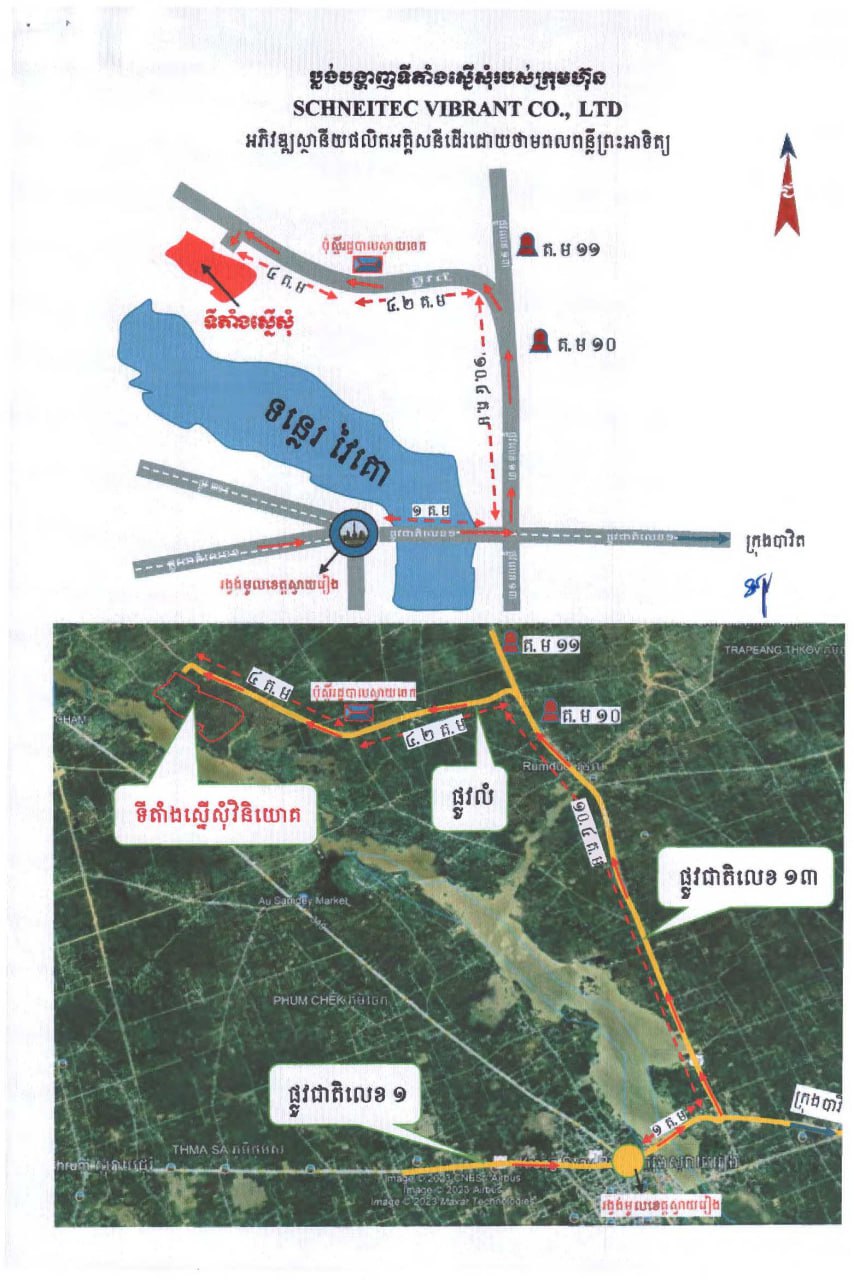 តាមសំណើសុំវិនិយោគរបស់ក្រុមហ៊ុន នៅថ្ងៃទី៣០ ខែវិច្ឆិកា ឆ្នាំ២០២៣ នេះ ក្រុមប្រឹក្សាអភិវឌ្ឍន៍កម្ពុជា បានសម្រេចចេញវិញ្ញាបនបត្រចុះ បញ្ជីគម្រោងវិនិយោគជូនដល់ក្រុមហ៊ុន SCHNEITEC VIBRANT CO., LTD គម្រោងវិនិយោគអភិវឌ្ឍន៍ស្ថានីយ៍ផលិតអគ្គិសនីដើរ ដោយថាមពលពន្លឺព្រះអាទិត្យ អានុភាព ៦០មេហ្កាវ៉ាត់ ជាមួយប្រព័ន្ធផ្ទុកថាមពលអគ្គិសនីខេត្តស្វាយរៀង។