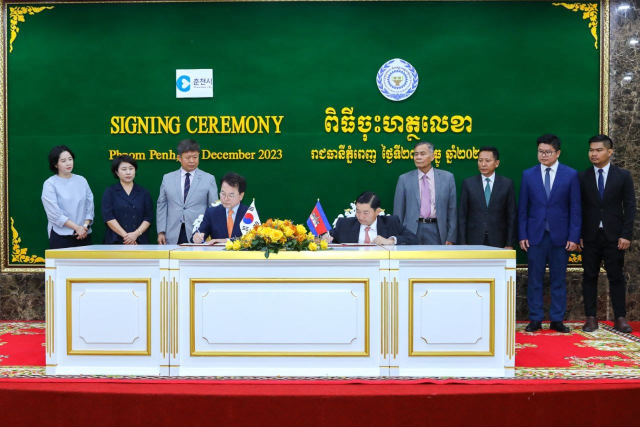 (ភ្នំពេញ)៖ រដ្ឋមន្ត្រីក្រសួងការងារ និងបណ្តុះបណ្តាលវិជ្ជាជីវៈ នៅព្រឹកថ្ងៃទី២៧ ខែធ្នូ ឆ្នាំ២០២៣នេះ បានចុះអនុស្សរណៈយោគយល់គ្នាជាមួយនឹងអភិបាលក្រុងឈុនឆន់ ខេត្តកាំងវ៉ុននៃធារណរដ្ឋកូរ៉េ ដើម្បីផ្តល់ឱកាសជូនពលរដ្ឋកម្ពុជាដែលមានបំណងទៅធ្វើការជាពលកររដូវកាលនៅសាធារណរដ្ឋកូរ៉េ។ ពិធីចុះអនុស្សរណៈនេះ គឺធ្វើឡើងនៅទីស្តីការក្រសួងការងារ និងបណ្តុះបណ្តាលវិជ្ជាជីវៈ។