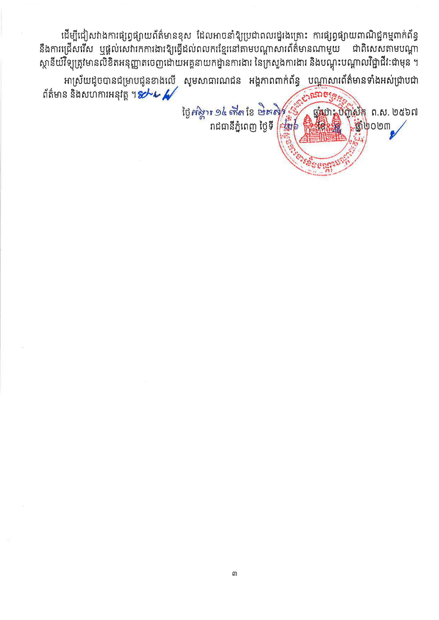 ក្រសួងការងារ និងបណ្ដុះបណ្ដាលជំនាញវិជ្ជាជីវៈ នៅថ្ងៃទី០២ ខែមករា ឆ្នាំ២០២៤ នេះ បានចេញសេចក្ដីជូនដំណឹងស្តីពីទីភ្នាក់ងារជ្រើសរើសឯកជនដែលបានទទួលការអនុញ្ញាតឱ្យធ្វើការជ្រើសរើសបណ្តុះបណ្តាល បញ្ជូន និងគ្រប់គ្រងពលការិនីជំនួយការមេផ្ទះទៅធ្វើការនៅប្រទេស និងតំបន់ ចំនួន ៨ រួមមាន៖ ព្រះរាជាណាចក្រអារ៉ាប់ប៊ីសាអូឌីត តំបន់រដ្ឋបាលពិសេសហុងកុង ប្រទេស សិង្ហបុរី រដ្ឋគូវ៉ែត រដ្ឋកាតា ប្រទេស ម៉ាឡេស៊ី ព្រះរាជាណាចក្រថៃឡង់ដ៍ និងប្រទេសជប៉ុន។