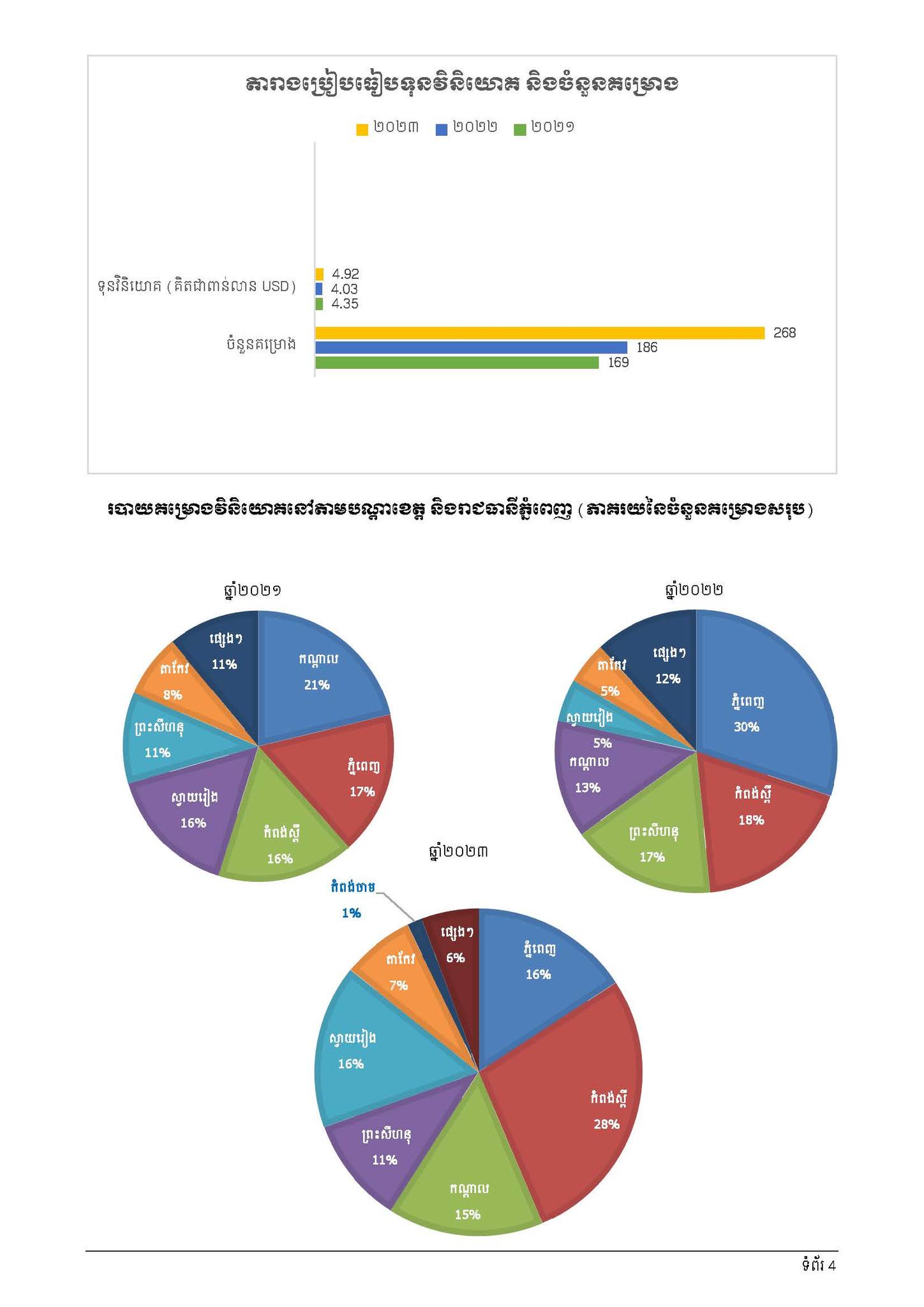 ក្នុងឆ្នាំ២០២៣ ក្រុមប្រឹក្សាអភិវឌ្ឍន៍កម្ពុជា (CDC) បានអនុម័តគម្រោងវិនិយោគចំនួន ២៦៨ ដែលមានទុនវិនិយោគសរុបប្រមាណជិត ៤,៩ ពាន់លានដុល្លារអាម៉េរិក ខណៈគម្រោងវិនិយោគភាគច្រើន មានទីតាំងស្ថិតក្នុងខេត្តកំពង់ស្ពឺ។ នេះបើយោងតាមការចុះផ្សាយរបស់ ក្រុមប្រឹក្សាអភិវឌ្ឍន៍កម្ពុជា នារសៀលថ្ងៃទី០៣ ខែមករា ឆ្នាំ២០២៤នេះ។