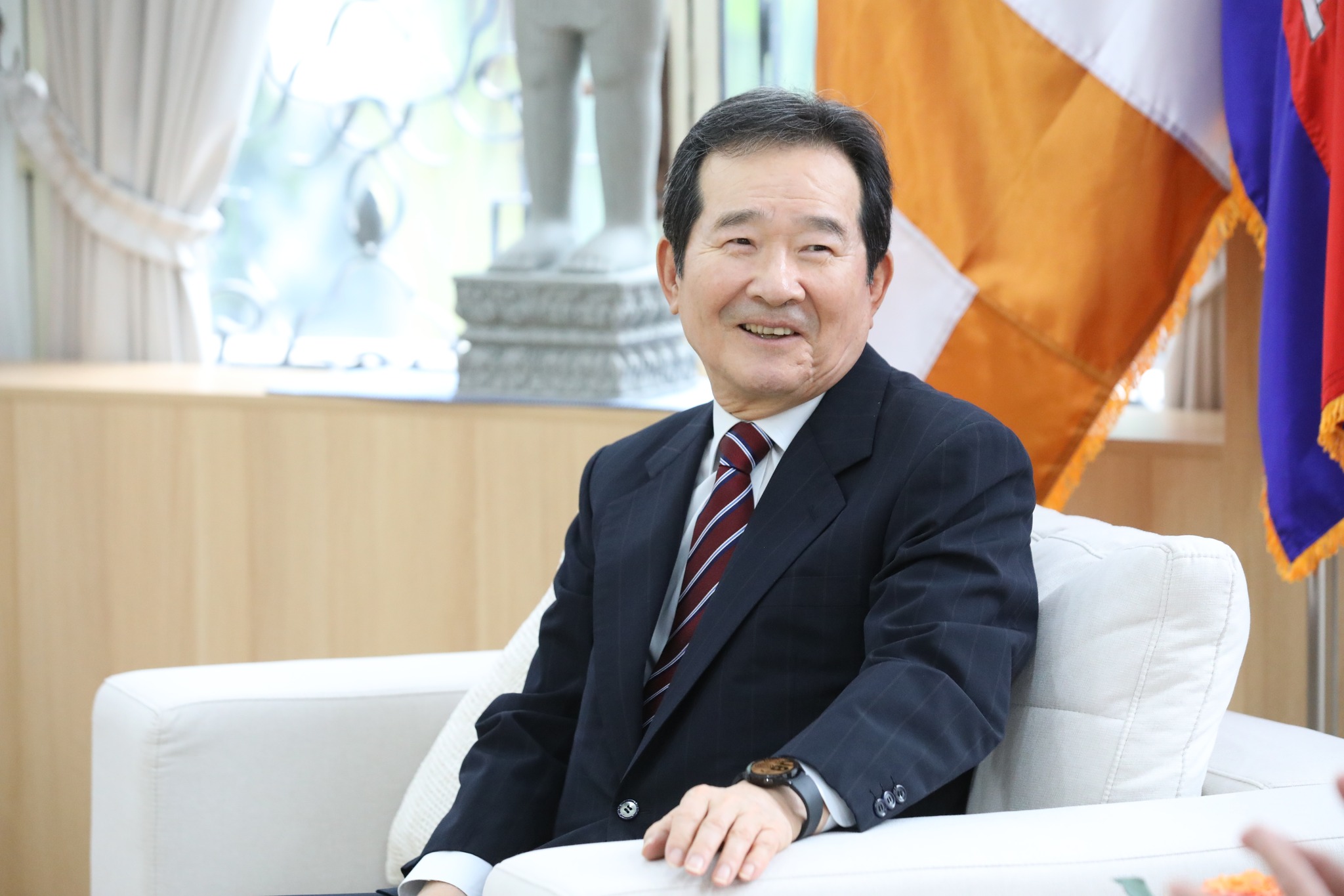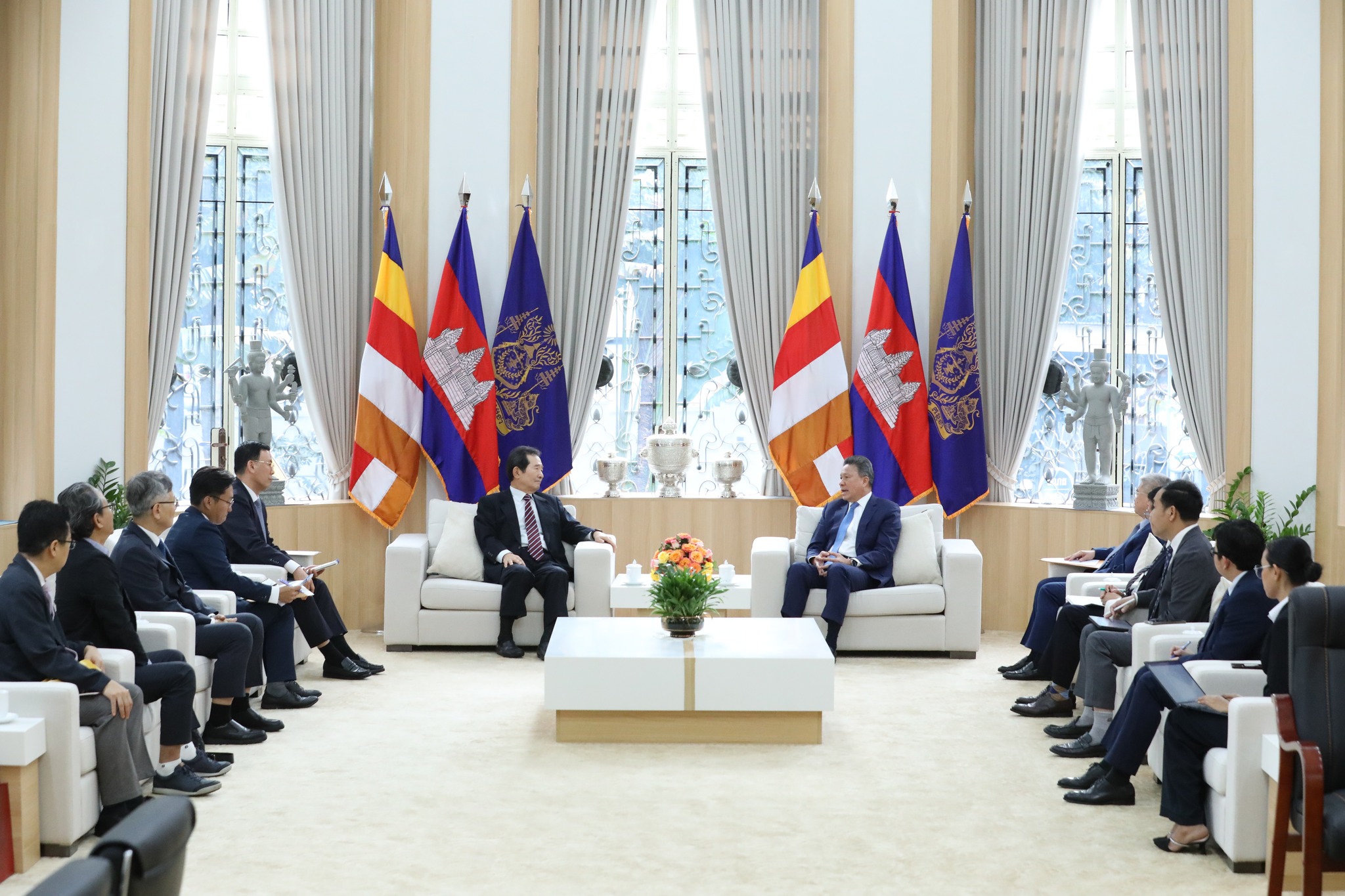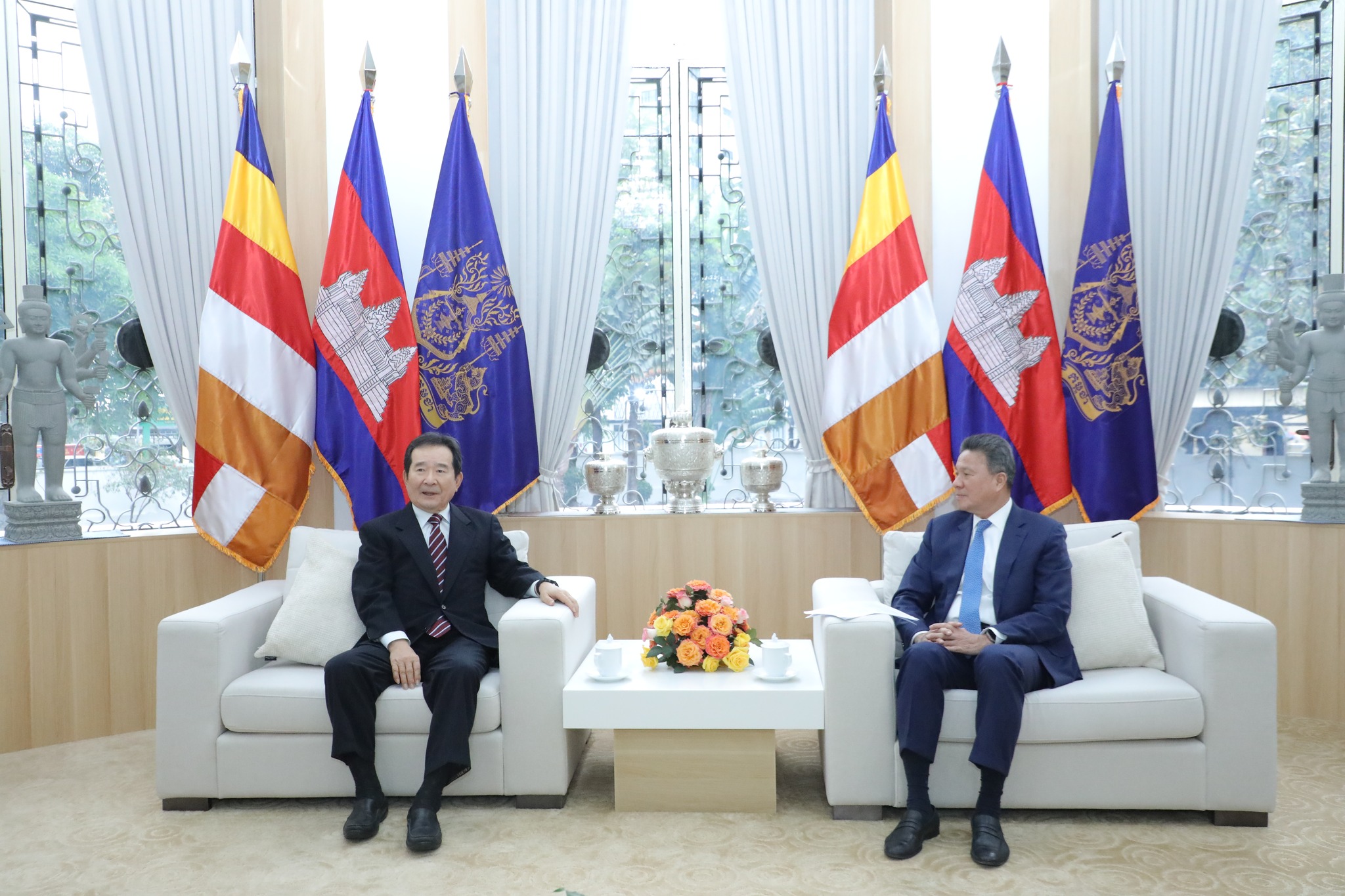 ក្នុងឱកាសនេះ ឯកឧត្តមឧបនាយករដ្ឋមន្ត្រី បានសម្ដែងនូវការស្វាគមន៍យ៉ាងកក់ក្ដៅជូនចំពោះ ឯកឧត្តម Chung Sye-kyun ក្នុងដំណើរទស្សនកិច្ចមកកម្ពុជា បន្ថែមពីនេះតបលើការលើកឡើងអំពីគុណភាពខ្យល់ ឯកឧត្តមឧបនាយករដ្ឋមន្ត្រី បានជម្រាបផងដែរអំពីទិសដៅរបស់កម្ពុជាក្នុងការជំរុញការប្រើប្រាស់ថាមពលកកើតឡើងវិញឱ្យបាន៧០% នៃថាមពលប្រើប្រាស់សរុបសម្រាប់ឆ្នាំ២០២៤។ ឆ្លៀតក្នុងឱកាសនេះ ឯកឧត្តមឧបនាយករដ្ឋមន្ត្រី ក៏បានស្នើសុំឱ្យឯកឧត្តម Chung Sye-kyun ជួយសម្របសម្រួល និងពិនិត្យលទ្ធភាពក្នុងការផ្សព្វផ្សាយអំពីសក្ដានុពលរបស់ប្រទេសកម្ពុជាបន្ថែមទៀតជូនដល់វិនិយោគិនកូរ៉េ ក្នុងគោលដៅដើម្បីពង្រីកសកម្មភាពវិនិយោគរវាងភាគីទាំងពីរ៕