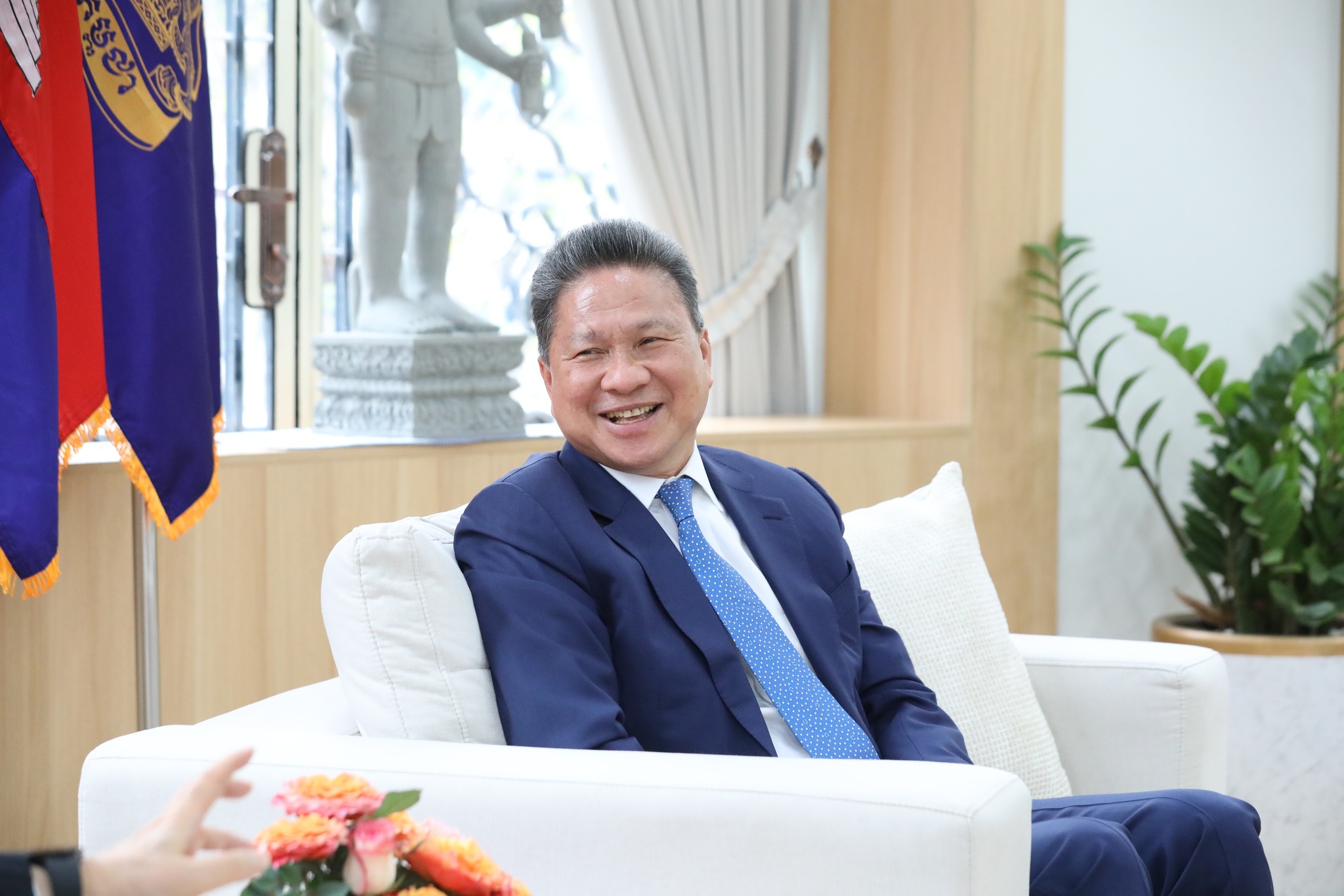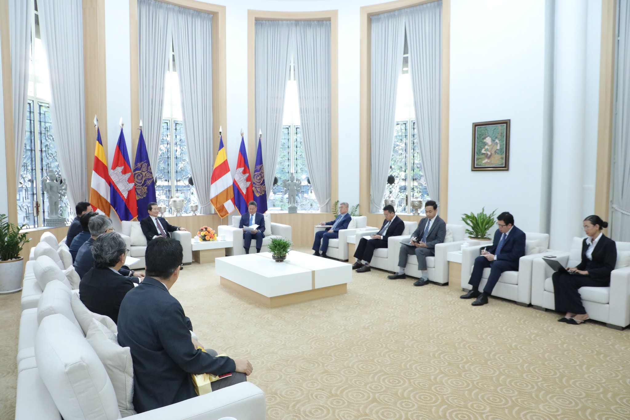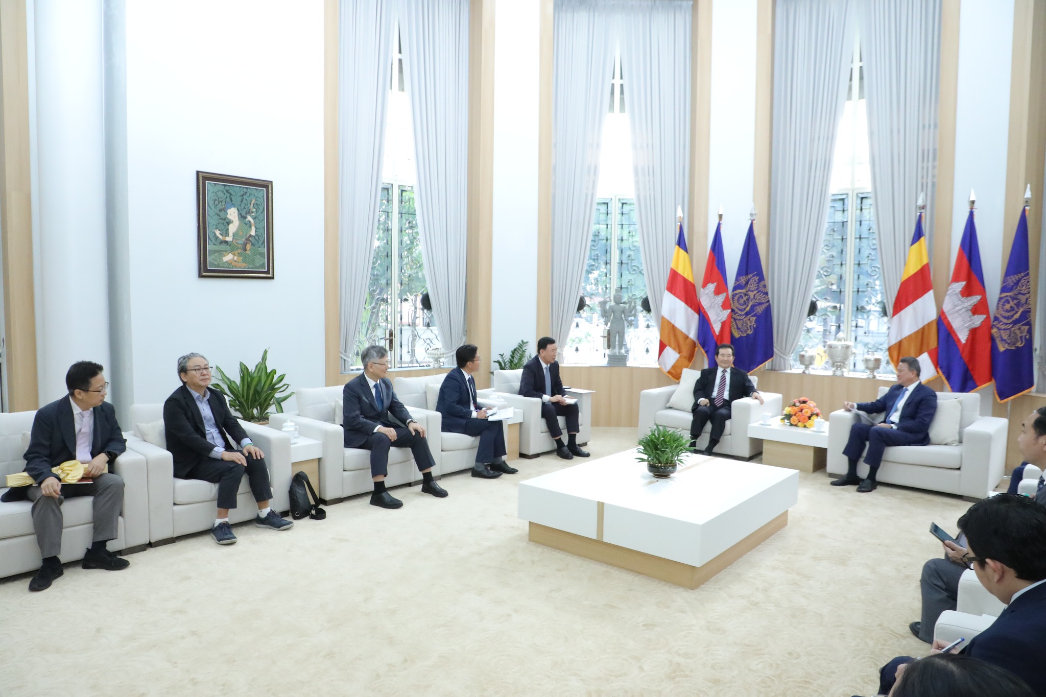 ក្នុងឱកាសនេះ ឯកឧត្តមឧបនាយករដ្ឋមន្ត្រី បានសម្ដែងនូវការស្វាគមន៍យ៉ាងកក់ក្ដៅជូនចំពោះ ឯកឧត្តម Chung Sye-kyun ក្នុងដំណើរទស្សនកិច្ចមកកម្ពុជា បន្ថែមពីនេះតបលើការលើកឡើងអំពីគុណភាពខ្យល់ ឯកឧត្តមឧបនាយករដ្ឋមន្ត្រី បានជម្រាបផងដែរអំពីទិសដៅរបស់កម្ពុជាក្នុងការជំរុញការប្រើប្រាស់ថាមពលកកើតឡើងវិញឱ្យបាន៧០% នៃថាមពលប្រើប្រាស់សរុបសម្រាប់ឆ្នាំ២០២៤។ ឆ្លៀតក្នុងឱកាសនេះ ឯកឧត្តមឧបនាយករដ្ឋមន្ត្រី ក៏បានស្នើសុំឱ្យឯកឧត្តម Chung Sye-kyun ជួយសម្របសម្រួល និងពិនិត្យលទ្ធភាពក្នុងការផ្សព្វផ្សាយអំពីសក្ដានុពលរបស់ប្រទេសកម្ពុជាបន្ថែមទៀតជូនដល់វិនិយោគិនកូរ៉េ ក្នុងគោលដៅដើម្បីពង្រីកសកម្មភាពវិនិយោគរវាងភាគីទាំងពីរ៕
