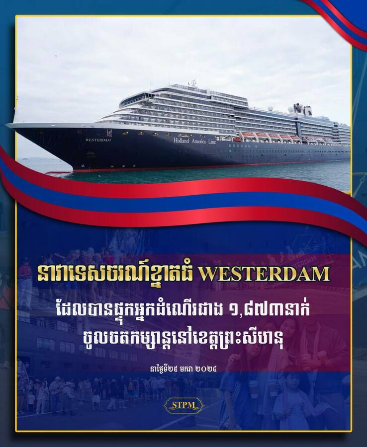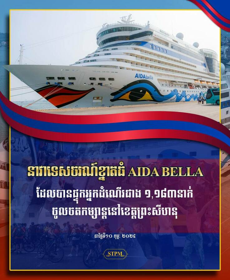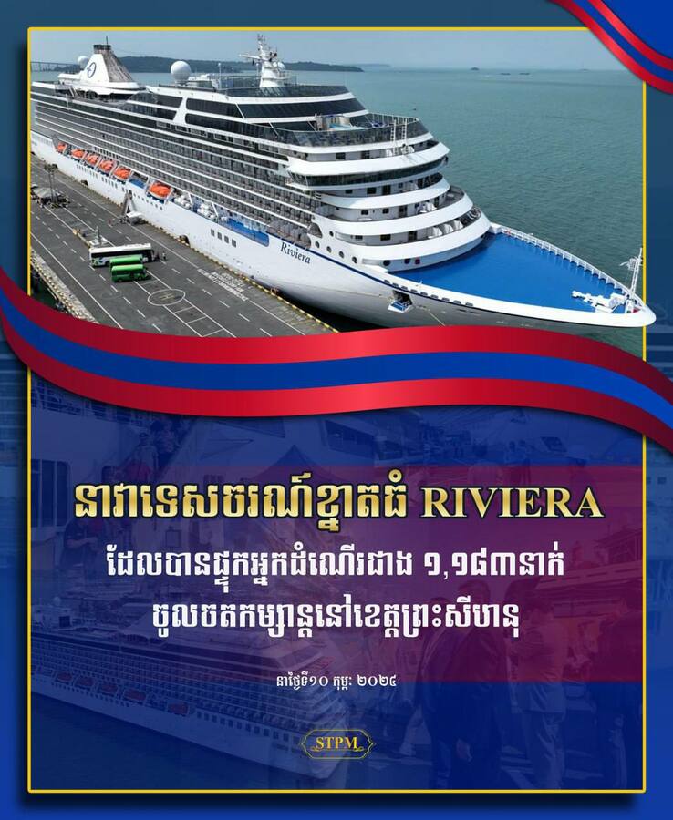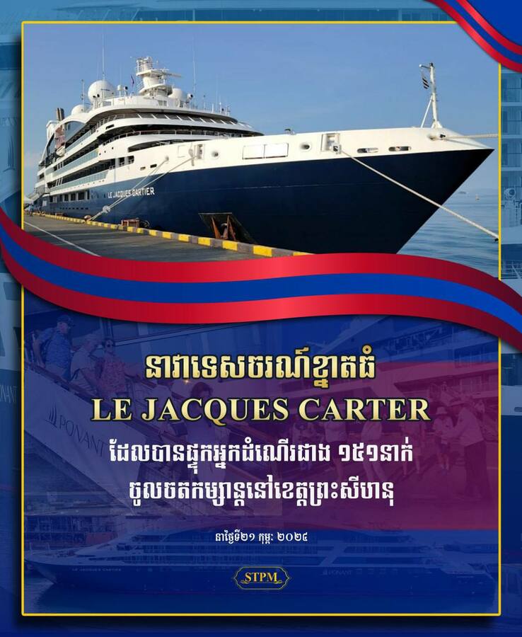 យោងតាមការចុះផ្សាយរបស់ ក្រសួងព័ត៌មាន បានឱ្យដឹងថា នៅថ្ងៃទី២៤ ខែកុម្ភៈ ឆ្នាំ២០២៤នេះ សម្តេចមហាបវរធិបតី ហ៊ុន ម៉ាណែត នាយករដ្ឋមន្ត្រី នៃព្រះរាជាណាចក្រកម្ពុជា បានសរសេរនៅលើបណ្តាញសង្គមតេឡេក្រាម របស់សម្តេចយ៉ាងដូច្នេះថា «រយៈពេលជិត២ខែមកនេះ កម្ពុជាទទួលបានទេសចរ ចំនួន ៨ ៤១៩នាក់ ដែលធ្វើដំណើរកម្សាន្តតាមនាវាខ្នាតយក្ស ចំនួន ១០លើក រួមមាន៖