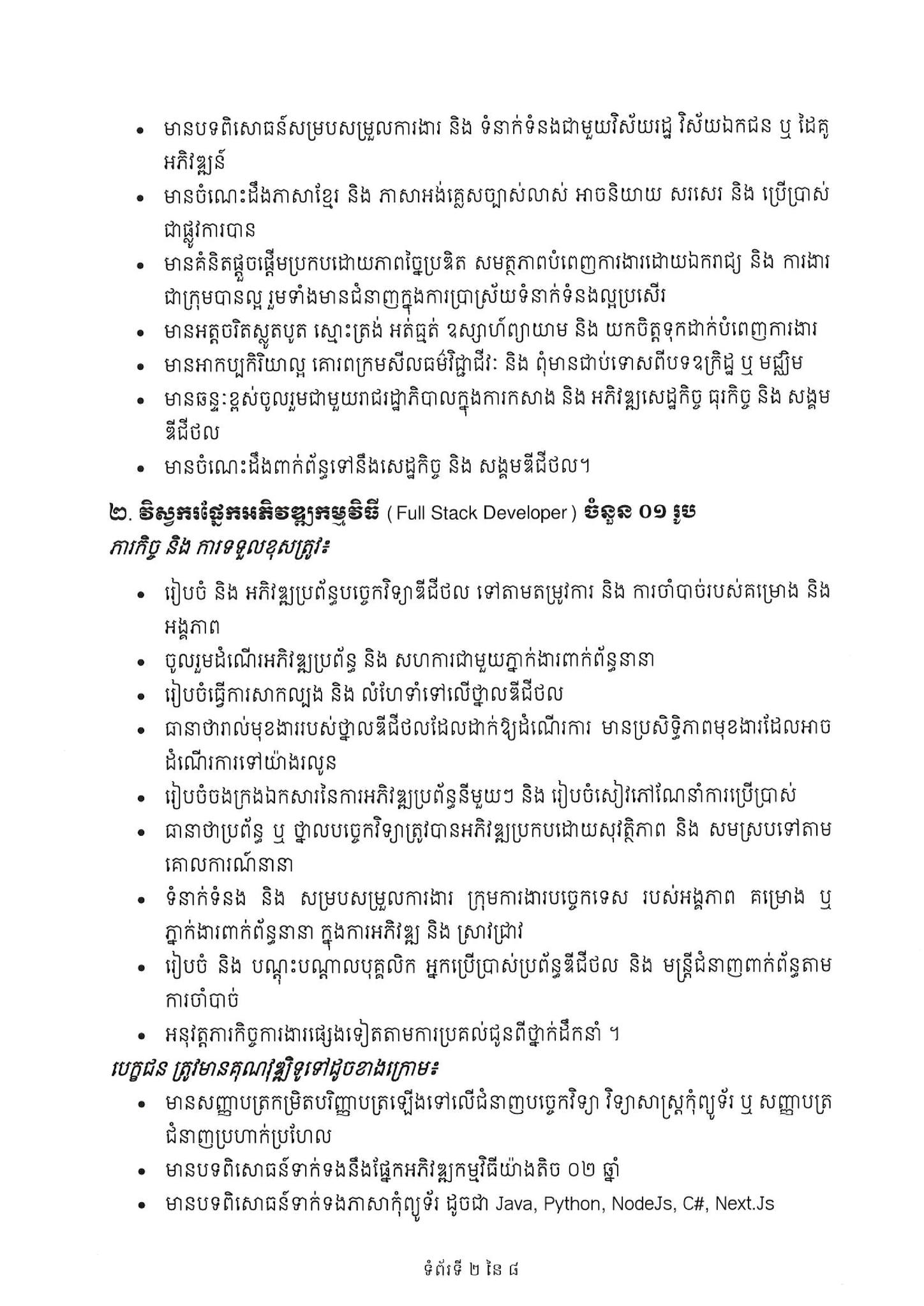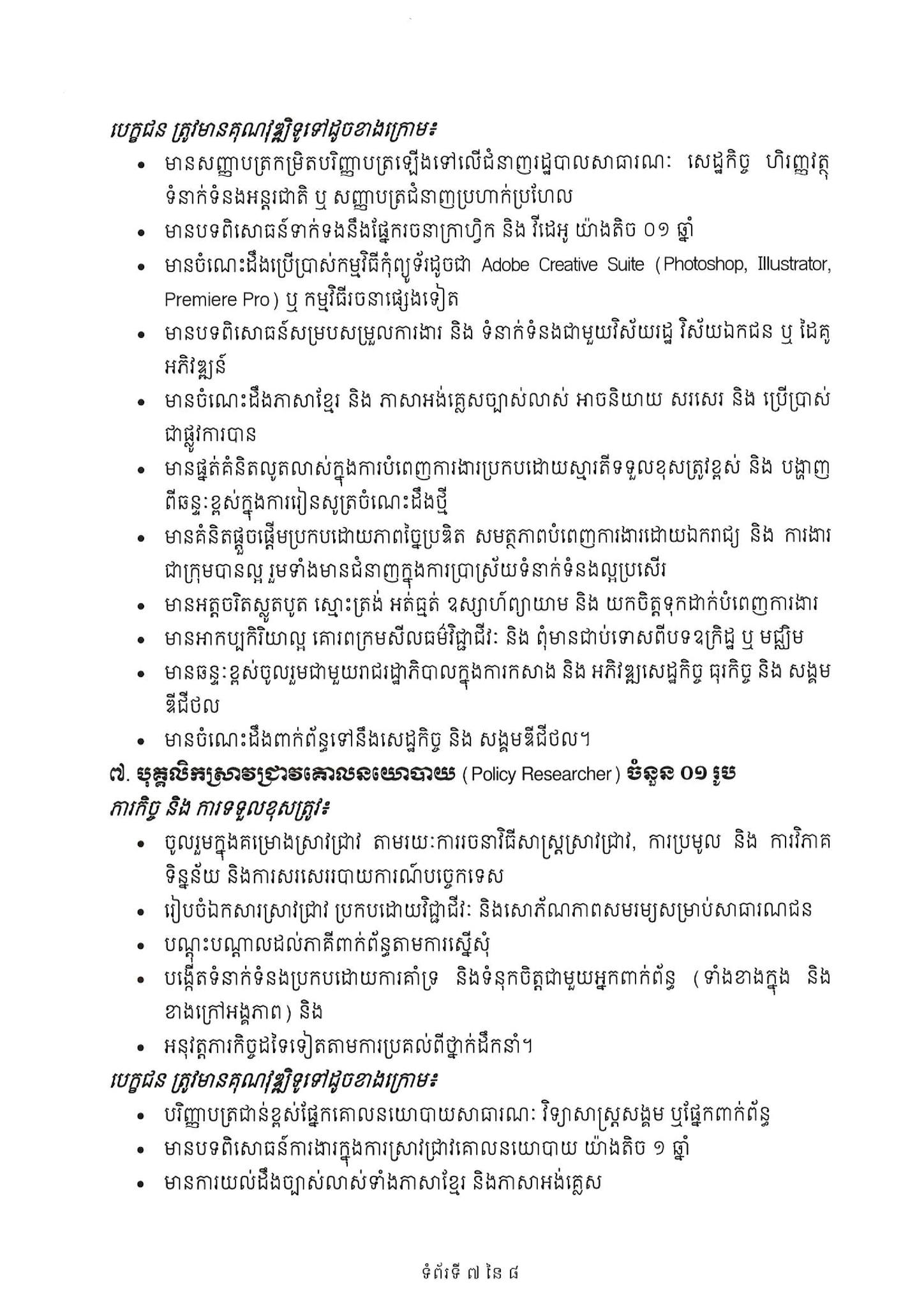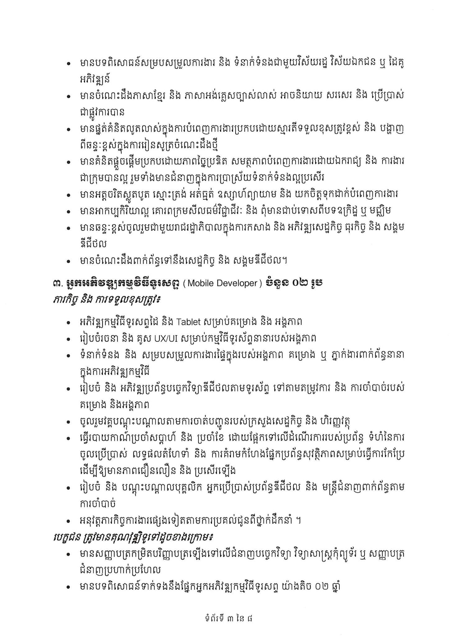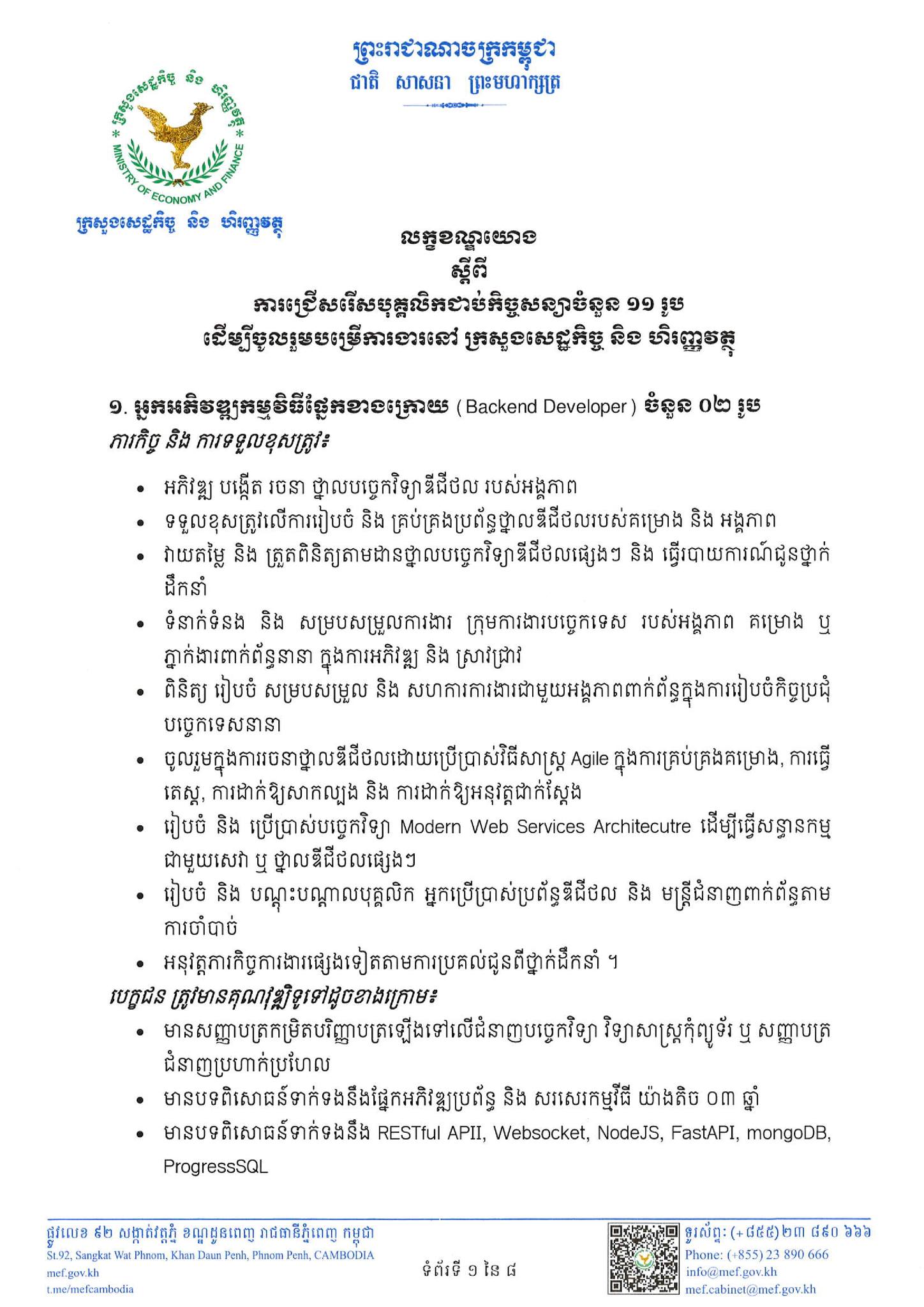 ឱកាសការងាររដ្ឋ! ក្រសួងសេដ្ឋកិច្ចប្រកាសរើសបុគ្គលិកជាប់កិច្ចសន្យា ១១រូប ចូលបម្រើការងារនៅមជ្ឈមណ្ឌលបណ្ដុះធុរកិច្ចថ្មី “តេជោ”
