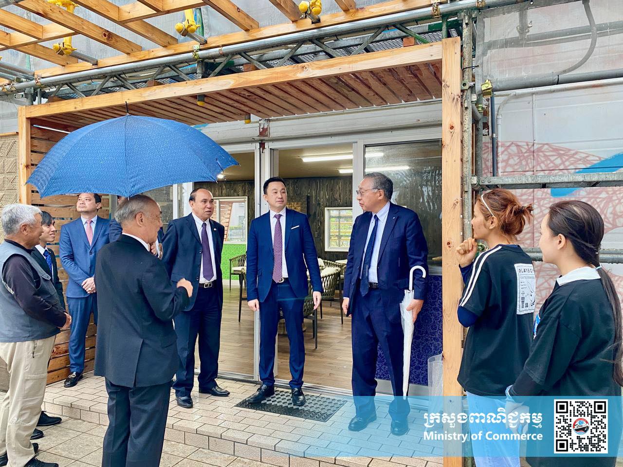 តាមរយៈការផុសនៅលើផេកផ្លូវការ ក្រសួងពាណិជ្ជកម្ម បានឱ្យដឹងថា កាលពីរសៀលថ្ងៃទី១ ខែឧសភា ឆ្នាំ២០២៤ ឯកឧត្តម លីម ឡោកពិសិដ្ឋ រដ្ឋលេខាធិការក្រសួងពាណិជ្ជកម្ម អមដំណើរដោយ ឯកឧត្តម ទុយ រី ឯកអគ្គរាជទូតកម្ពុជាប្រចាំប្រទេសជប៉ុន បានចុះពិនិត្យមើលសកម្មភាពសាងសង់មជ្ឈមណ្ឌលពាណិជ្ជកម្មឯកជនកម្ពុជា និងភូមិខ្មែរ នៅទីក្រុងអាតស៊ូគិ ខេត្តកាណាហ្គាវ៉ា ប្រទេសជប៉ុន និងជួបប្រជុំពិភាក្សាការងារជាមួយ លោក Takeshi Okami តំណាងក្រុមហ៊ុន Kojima Holdings Co., Ltd ដែលជាអ្នកគ្រប់គ្រង និងដំណើរការមជ្ឈមណ្ឌលពាណិជ្ជកម្មឯកជនកម្ពុជា ផងដែរ។