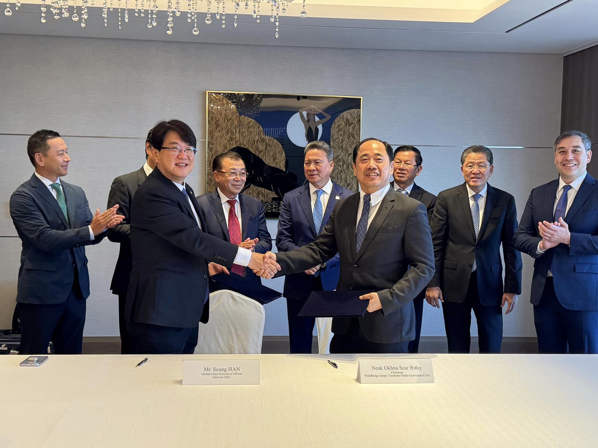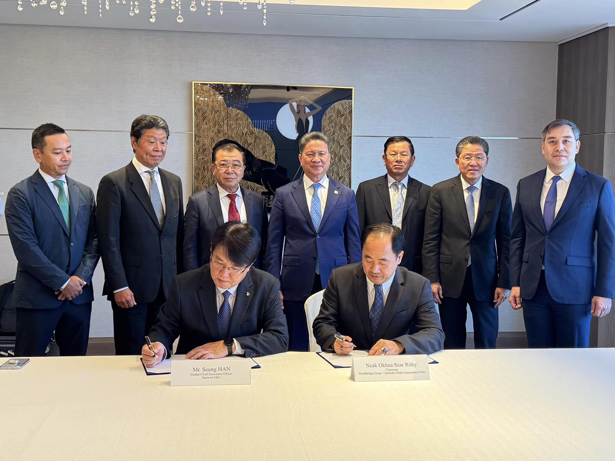 ជាមួយគ្នាក្នុងឱកាសនៃកិច្ចទាក់ទាញវិនិយោគិននេះ ឯកឧត្តមឧបនាយករដ្ឋមន្ត្រី ក៏បានអញ្ជើញជាអធិបតី ក្នុងពិធីចុះហត្ថលេខាលើអនុស្សារណៈនៃការយោគយល់គ្នា រវាងក្រុមហ៊ុន WorldBridge និងក្រុមហ៊ុន Daewoo E&C លើកិច្ចសហប្រតិបត្តិការអភិវឌ្ឍន៍វិស័យអចលនទ្រព្យផងដែរ៕
