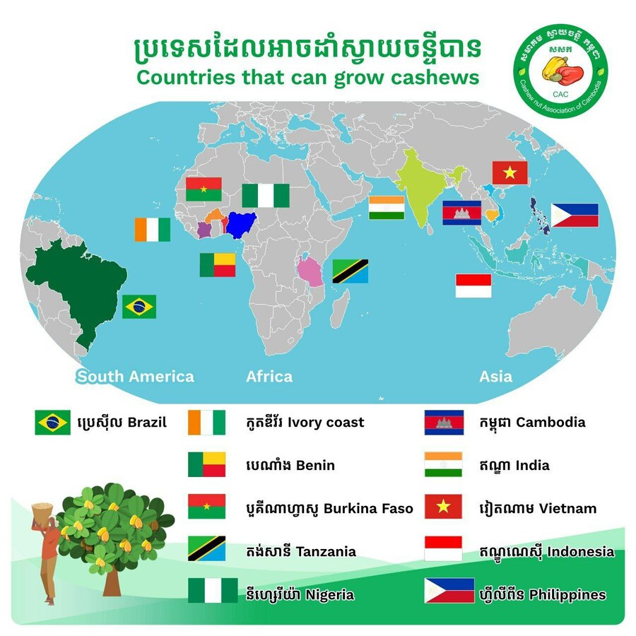 សូមជម្រាបថា បច្ចុប្បន្នប្រទេសផលិតគ្រាប់ស្វាយចន្ទីឆៅធំជាងគេទី ១ របស់ពិភពលោក គឺប្រទេសកូតឌីវ័រ។ ចំណែកកម្ពុជាបាននាំមុខប្រទេសឥណ្ឌាជាប្រទេសលំដាប់ទី២ ដោយរុញប្រទេសឥណ្ឌាឱ្យធ្លាក់មកនៅលេខរៀងទី៣។