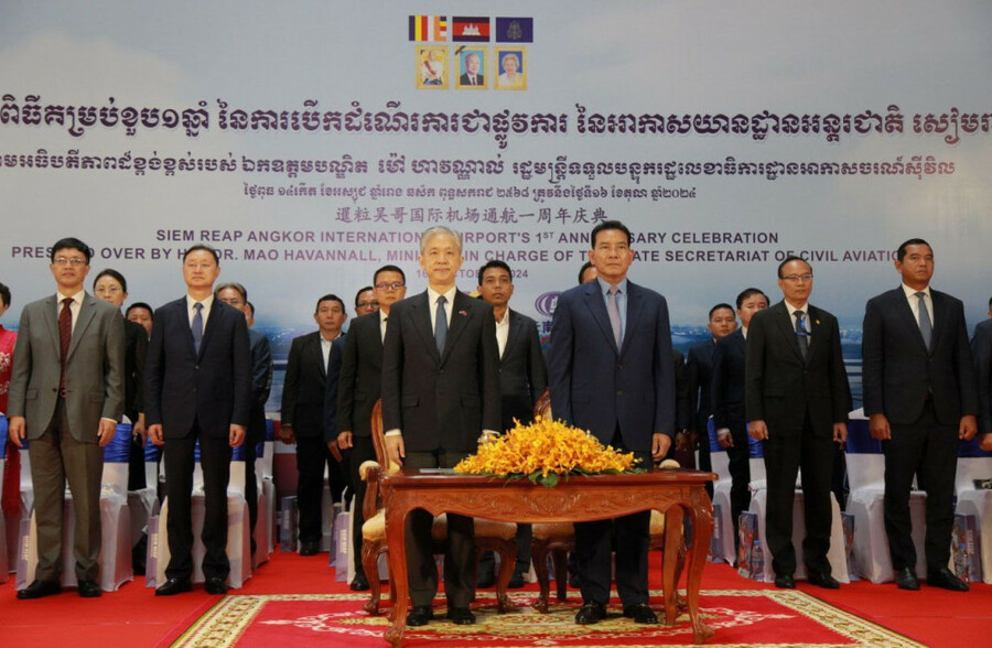 សូមជម្រាបជូនថា នៅអាកាសយានដ្ឋានអន្តរជាតិសៀមរាបអង្គរ នាព្រឹកថ្ងៃទី១៦ ខែតុលា ឆ្នាំ២០២៤ បានប្រារព្ធពិធីអបអរសាទរគម្រប់ខួប១ឆ្នាំនៃការដាក់ឱ្យប្រើប្រាស់អាកាសយានដ្ឋានអន្តរជាតិសៀមរាបអង្គរ (SAI)” ដោយមានការអញ្ជើញចូលរួមពីសំណាក់ ឯកឧត្តមបណ្ឌិត ម៉ៅ ហាវណ្ណាល់ ឯកឧត្តម Weng Wenbin ឯកអគ្គរដ្ឋទូតចិនប្រចាំនៅព្រះរាជាណាចក្រកម្ពុជា។