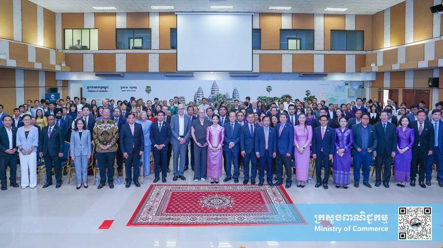ពិធីនេះ ធ្វើឡើងនៅទីស្តីការក្រសួងពាណិជ្ជកម្ម ក្រោមអធិបតីភាពដ៏ខ្ពង់ខ្ពស់របស់ លោកជំទាវ ចម និម្មល រដ្ឋមន្ត្រីក្រសួងពាណិជ្ជកម្ម និងមានការអញ្ជើញចូលរួមពីសំណាក់បណ្តាអង្គទូតប្រចាំនៅព្រះរាជាណាចក្រកម្ពុជា តំណាងក្រសួង-ស្ថាប័នពាក់ព័ន្ធ វិស័យឯកជន និងដៃគូអភិវឌ្ឍ ជាច្រើនរូប។