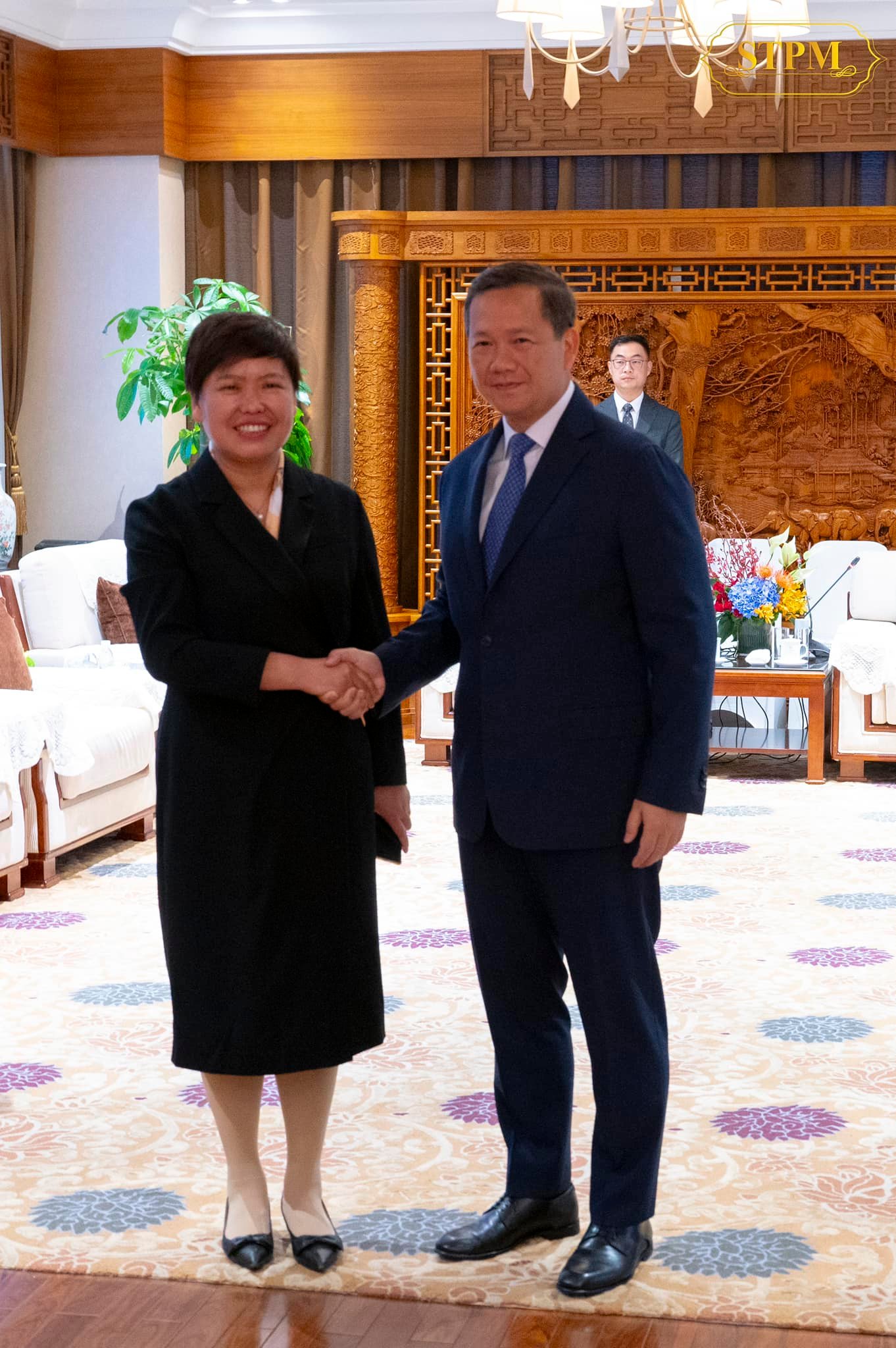 នាព្រឹក ថ្ងៃទី៦ ខែវិច្ឆិកា ឆ្នាំ២០២៤ សម្តេចមហាបវរធិបតី ហ៊ុន ម៉ាណែត នាយករដ្ឋមន្រ្តី នៃព្រះរាជាណាចក្រកម្ពុជា បានអនុញ្ញាតឱ្យ លោកស្រី Xuemei Chen ប្រធាន និងជាស្ថាបនិកនៃក្រុមហ៊ុន Zhengzhou Chen’s Sun ចូលជួបសម្ដែងការគួរសម និងពិភាក្សាការងារ ក្នុងឱកាសអញ្ជើញចូលរួមកិច្ចប្រជុំកំពូលមហាអនុតំបន់មេគង្គ (GMS) លើកទី៨ នៅថ្ងៃទី៦-៧ ខែវិច្ឆិកា ឆ្នាំ២០២៤ នៅទីក្រុងគុនមិញ ខេត្តយូណាន សាធារណរដ្ឋប្រជាមានិតចិន។