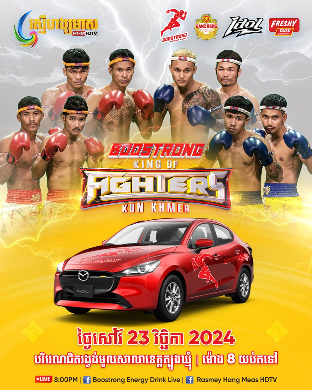 ប៊ូសស្រ្តងបន្តបង្កើតប្រវត្តិសាស្រ្តគុនខ្មែរ ប្រកួតដណ្ដើមឡានថ្មីខ្លាញ់គោទី7 អមជាមួយមហាព្រឹត្តិការណ៍ប្រគំតន្រ្តីដ៏ធំអស្ចារ្យ នៅបរិវេណជិតរង្វង់មូលសាលាខេត្តត្បូងឃ្មុំ ថ្ងៃទី22-23 ខែវិច្ឆិកា ឆ្នាំ2024 ចាប់ពីម៉ោង8យប់តទៅ។
