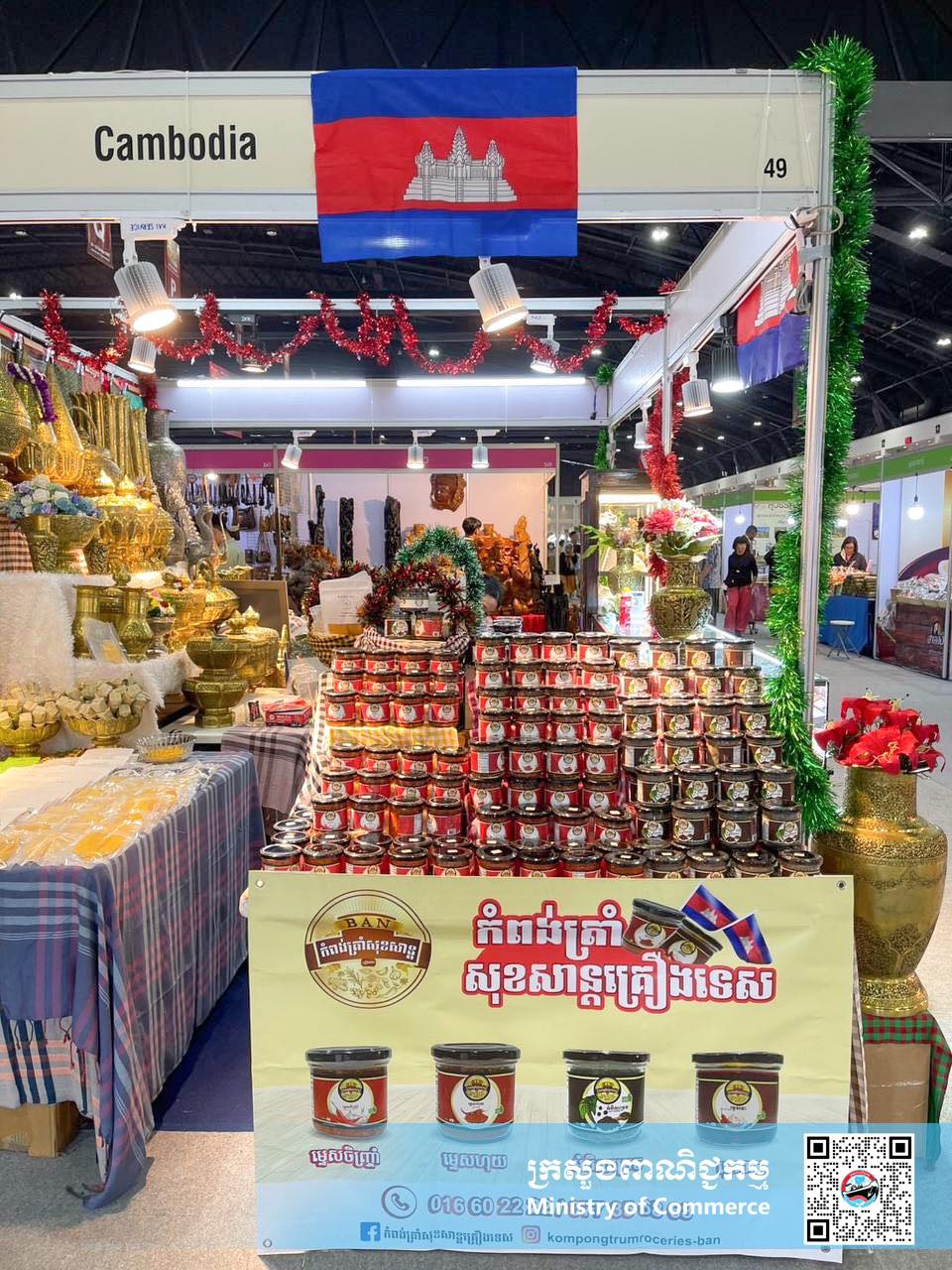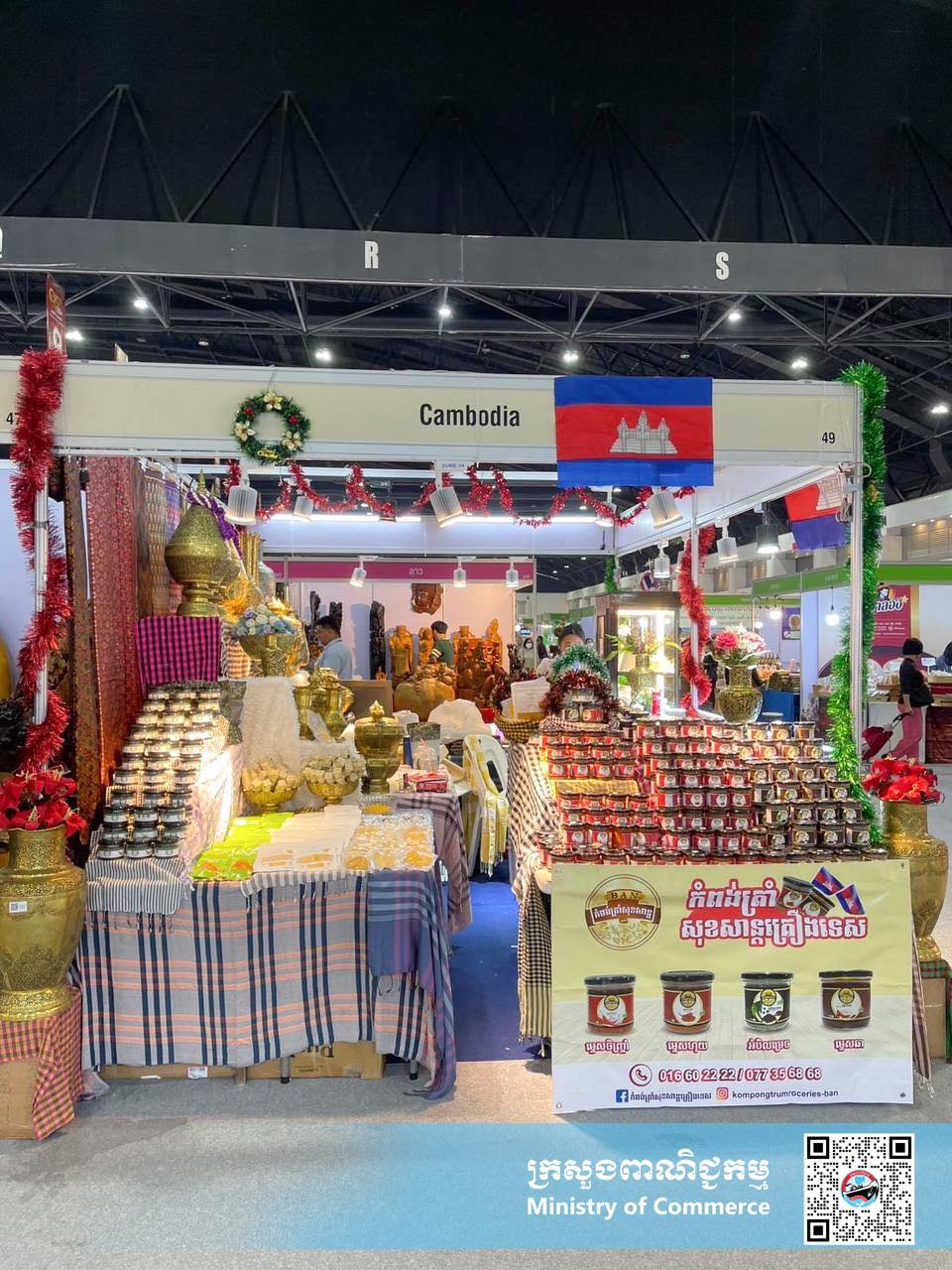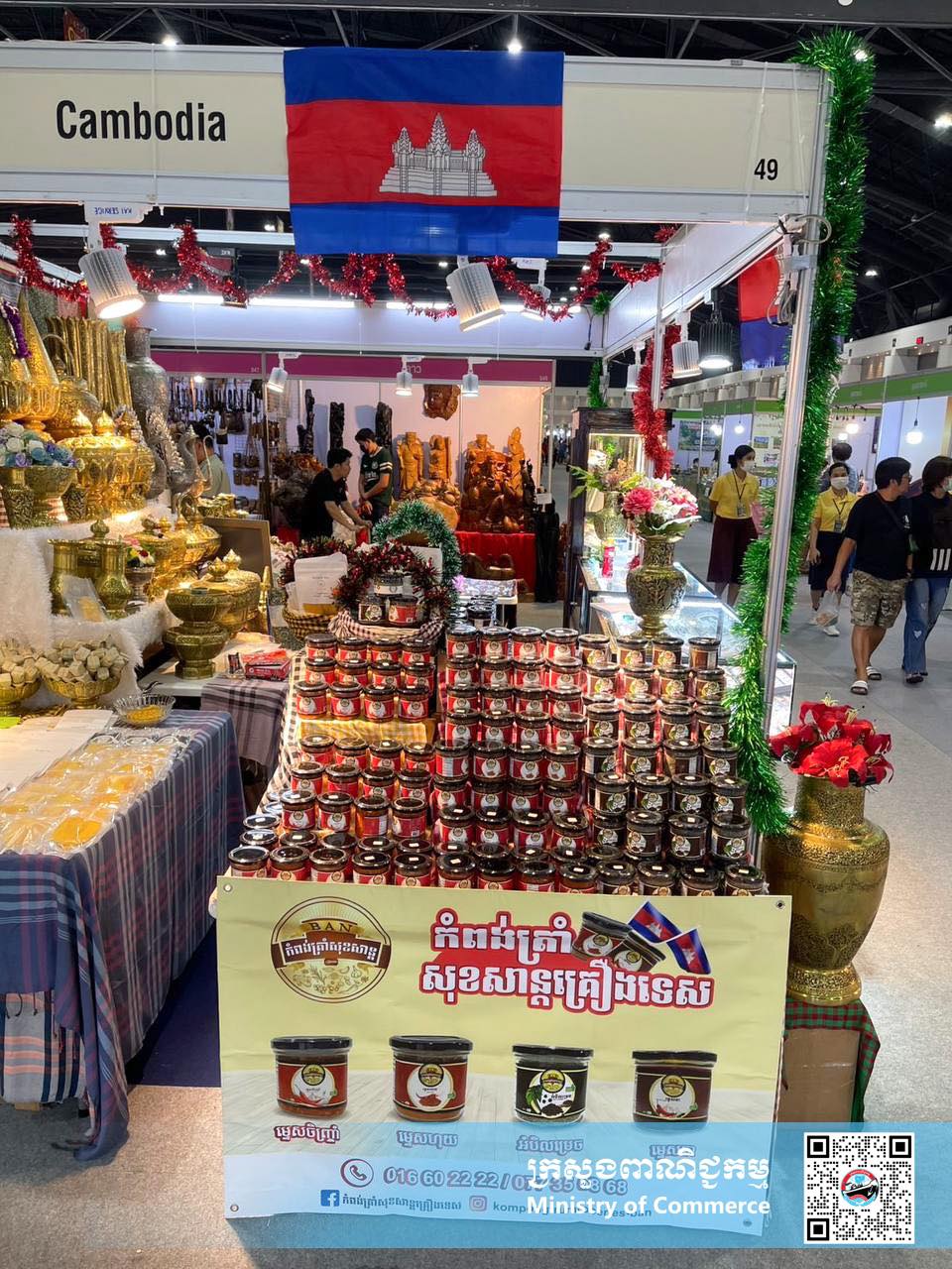 ក្នុងឱកាសនោះ ស្តង់ពិព័រណ៍របស់ស្ថានទូតកម្ពុជា បានដាក់តាំងបង្ហាញនូវផលិតផលដ៏មានសក្តានុពលរបស់ប្រទេសកម្ពុជាមួយចំនួន រួមមាន៖ គ្រាប់ស្វាយចន្ទីរ ម្រេច ម្រេចកំពត ស្ករត្នោតកំពង់ស្ពឺ ដំណាប់ស្វាយ ម្ទេសជ្រក់ ម្ទេសគ្រៀមកិន ខ្នុរគ្រៀម គ្រឿងអលង្ការ ក្រម៉ាខ្មែរ សំពត់សូត្រ និងវត្ថុអនុស្សាវរីយ៍ ដើម្បីផ្សព្វផ្សាយផលិតផលខ្មែរក្នុងទីផ្សារប្រទេសថៃឡង់ដ៍ ដើម្បីបង្ហាញជូនភ្ញៀវជនជាតិថៃ និងបរទេស។