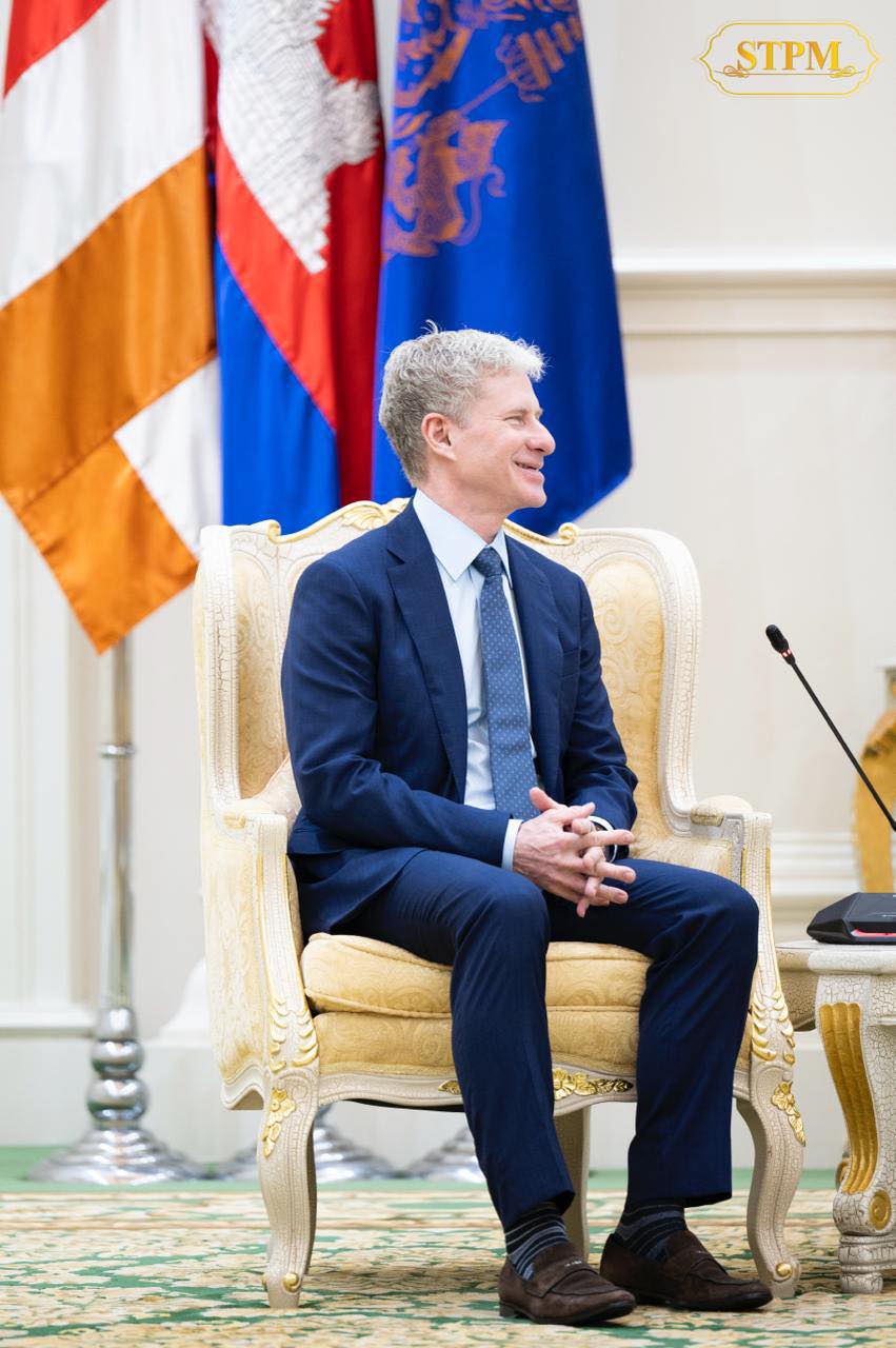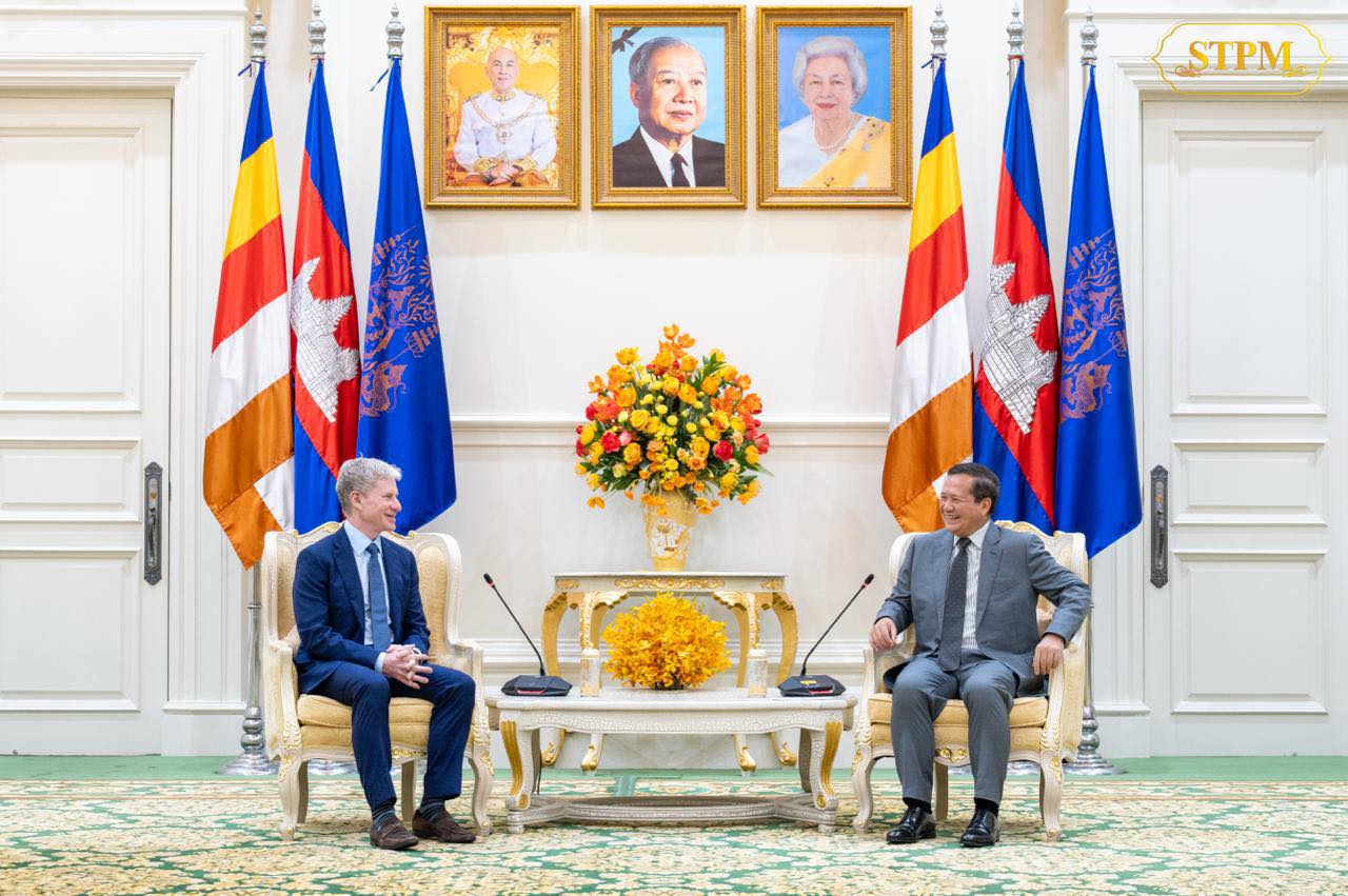 ក្នុងឱកាសនៃជំនួប, លោក Chris Larsen នាយកប្រតិបត្តិបានកោតសរសើរ និងវាយតម្លៃខ្ពស់ចំពោះការរីកចម្រើនយ៉ាងឆាប់រហ័សលើគ្រប់វិស័យរបស់ព្រះរាជាណាចក្រកម្ពុជា។ លោកនាយកប្រតិបត្តិបានគោរពជម្រាបជូនសម្ដេចបវរធិបតីអំពីចំណាប់អារម្មណ៍របស់ក្រុមហ៊ុនរបស់លោក ក្នុងកិច្ចសហប្រតិបត្តិការជាមួយកម្ពុជា ក្នុងវិស័យថាមពលកកើតឡើងវិញ ដោយផ្តោតលើការផលិតបន្ទះសូឡានៅកម្ពុជា សម្រាប់នាំចេញទៅកាន់សហរដ្ឋអាមេរិក ។ ជាមួយគ្នានោះ លោក Chris Larsen និងលោកស្រី Lyna Lam បានគោរពជម្រាបជូនសម្ដេចបវរធិបតីអំពីសកម្មភាពរបស់មូលនិធិពុទ្ធសាសនិកខ្មែរ ដែលបានចូលរួមថែរក្សា និង អភិរក្ស វប្បធម៌ ប្រពៃណីខ្មែរនៅសហរដ្ឋអាមេរិក តាមរយៈការកសាងវត្តអារាម ពិសេសនៅទីក្រុងសាន់ហ្វ្រាន់ស៊ីស្កូ និងក៏បានបង្ហាញពីបំណងចូលរួមចំណែកជួយដល់ការសិក្សាអប់រំរបស់កុមារកម្ពុជានៅតាមទីជនបទផងដែរ។