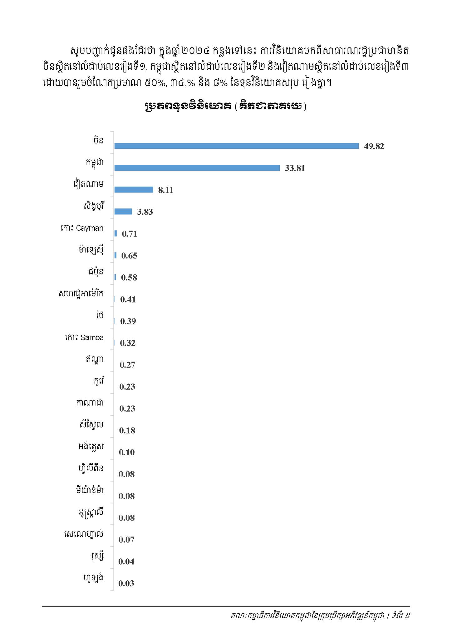 ជារួមក្នុងឆ្នាំ២០២៤ ការអនុម័តគម្រោងវិនិយោគមានការកើនឡើងចំនួន ១៤៦គម្រោង ខណៈទុនវិនិយោគមានការកើនឡើងប្រមាណជិត ២ពាន់លានដុល្លារ ស្មើនឹងប្រមាណជិត ៤០% ធៀបនឹងរយៈពេលដូចគ្នាក្នុង ឆ្នាំ២០២៣ ហើយក្នុងនោះគម្រោងពង្រីកផលិតកម្មបានកើនពី ២១គម្រោង ឡើងមក ២៧គម្រោង។