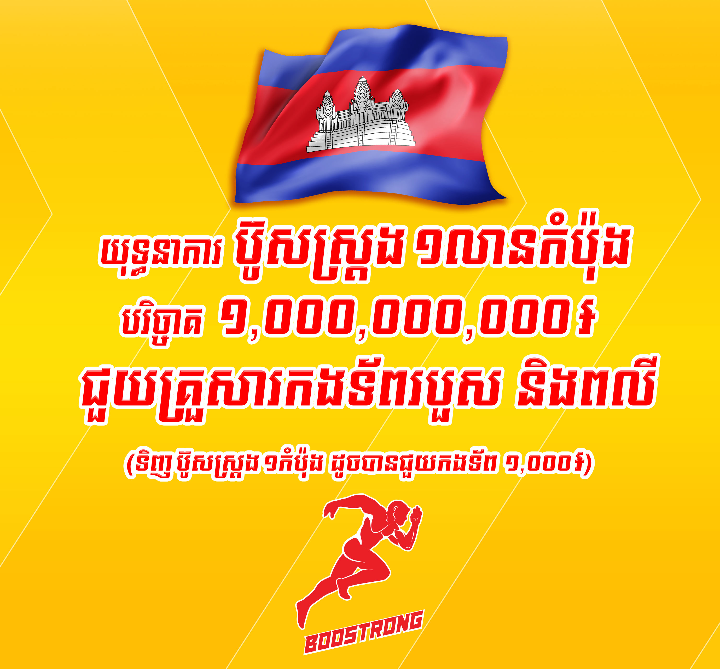 ប្រទេសជួបសង្រ្គាម គ្មានក្រុមហ៊ុនថៃណាមួយមកជួយខ្មែរឡើយ មានតែក្រុមហ៊ុនខ្មែរទេដែលជួយហើយជួយទៀត ខ្មែរជួយខ្មែរ ដូចក្រុមហ៊ុនប៊ូសស្រ្តងអ៊ីចឹង។ ឥឡូវនេះប៊ូសស្រ្តងបានបង្កើត យុទ្ធនាការ ប៊ូសស្រ្តង ១លានកំប៉ុង បរិច្ចាគ ១,000,000,000៛ ជួយគ្រួសារកងទ័ពរបួស និងពលី។ ដូច្នេះបើបងប្អូនចង់ចូលរួមយុទ្ធនាការនេះ បងប្អូនគ្រាន់តែទិញប៊ូសស្រ្តង ១កំប៉ុង ដូចបានជួយកងទ័ពផ្ទាល់ ១,០០០៛ ផងដែរ។