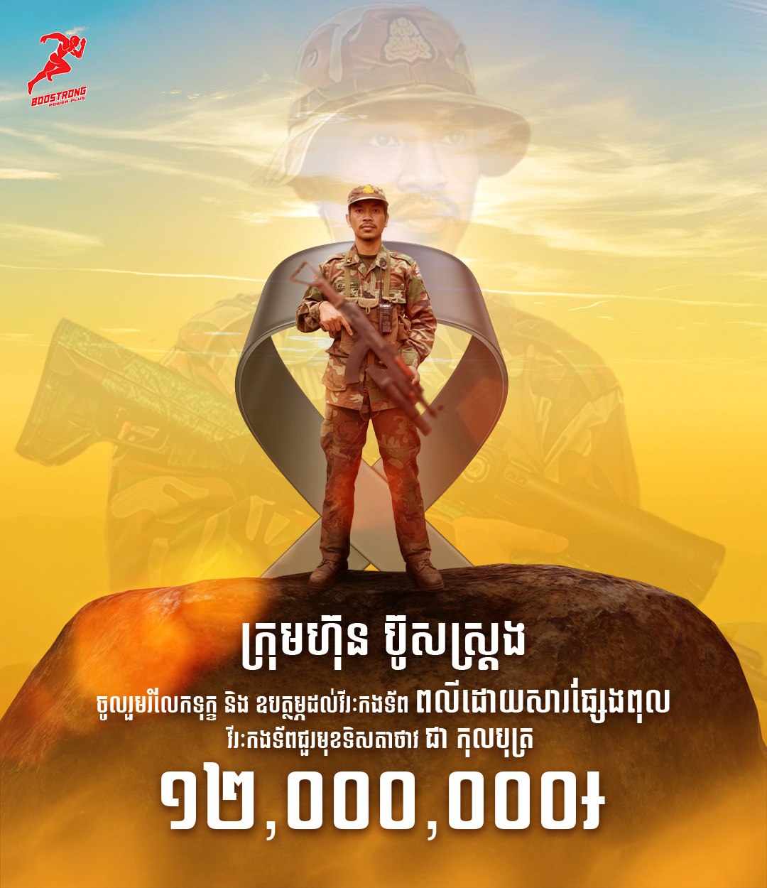 បងប្អូនខ្មែរជួយស៊ែឱ្យអន្តរជាតិបានឃើញផង វីរៈកងទ័ពខ្មែរម្នាក់ទៀតហើយ បានពលីដោយសារផ្សែងពុល។ ខ្មែរនឹងចងចាំនៃការលះបង់ដ៏ធំធេងដើម្បីការពារបូរណភាពទឹកដីរបស់វីរៈកងទ័ពជួរមុខទិសតាថាវ ជា កុលបុត្រ។ Mr. Christ តំណាងក្រុមហ៊ុនប៊ូសស្រ្តង បានចូលរួមរំលែកទុក្ខ និងឧបត្ថម្ភដល់គ្រួសារវីរៈកងទ័ពពលី ចំនួន ១២លានរៀល។