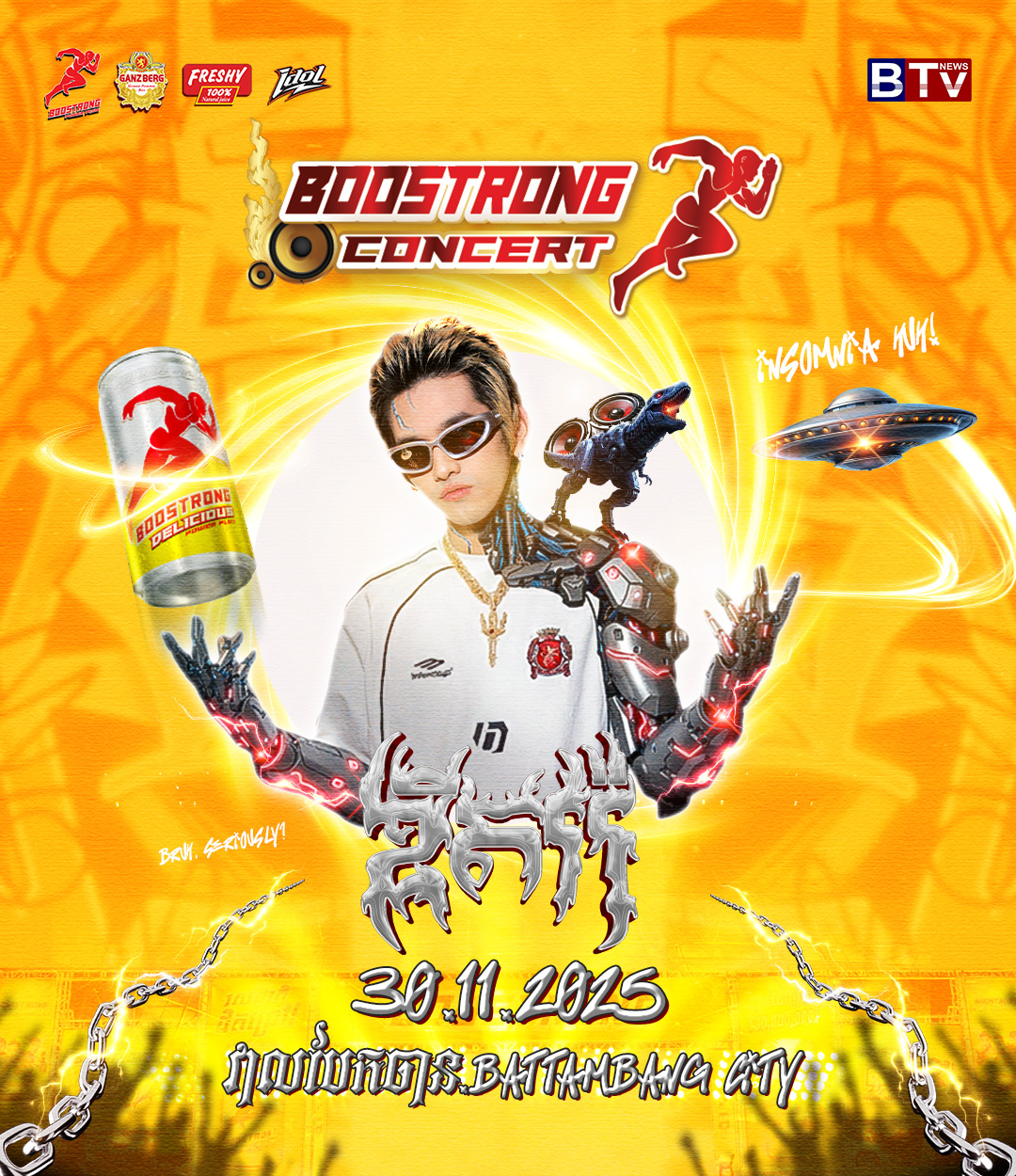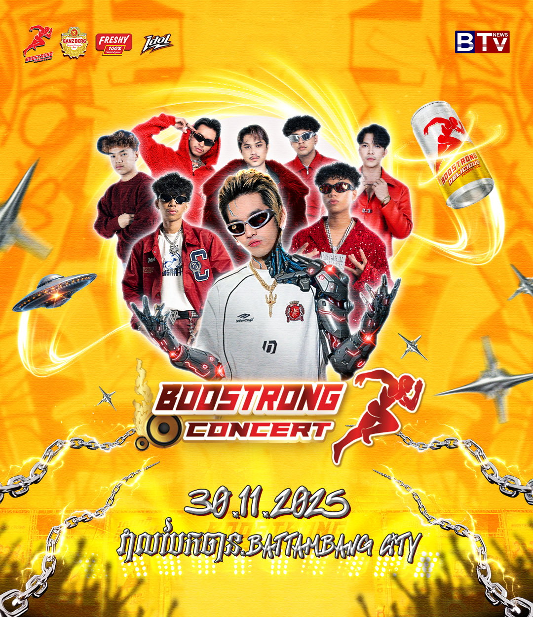 អ្នកបាត់ដំបង បើមិនបានទៅចូលរួម គឺខកចិត្តលំដាប់ VIP ហើយ។ កំពូលតារារ៉េបលោក G-Devith នឹងមកច្រៀងអបអរអ្នកស្រុកកំណើតខ្លួនឈ្នះរង្វាន់សេដ្ឋីក្មេង 130លានរៀលពីប៊ូសស្រ្តង ក្នុងនោះក៏មានវត្តមាន OG, Emi និងតារាចម្រៀងជាច្រើនរូបទៀត ក្នុងព្រឹត្តការណ៍ “Boostrong Concert” ថ្ងៃអាទិត្យ ទី30 ខែវិច្ឆិកា ឆ្នាំ2025 ចាប់ពីម៉ោង 6ល្ងាចតទៅ នៅតារាងបាល់ទាត់វាលបែកចាន ខេត្តបាត់ដំបង។