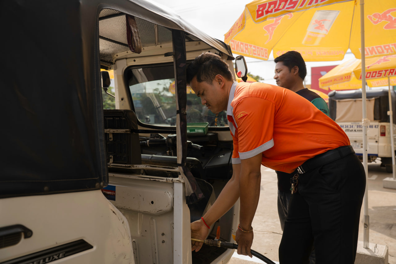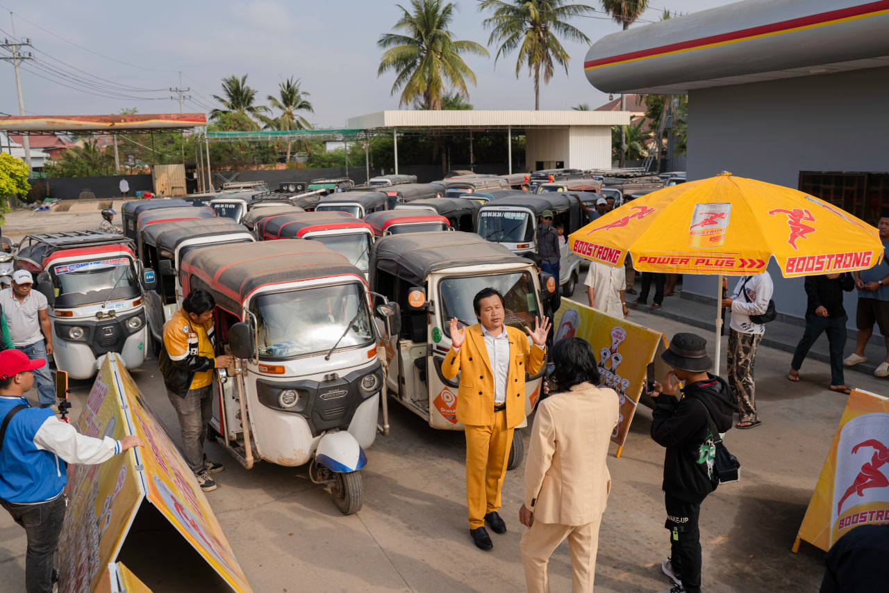 ផ្អើលពេញក្រុងច្បារមន ប៊ូសស្រ្តងចាក់ហ្គាសហ្វ្រីរាប់រយកង់បីមុនចូលឆ្នាំចិន ខណៈពេលកំពុងប្រគល់រង្វាន់សេដ្ឋីក្មេង 130លានរៀលនៅទីនោះ។