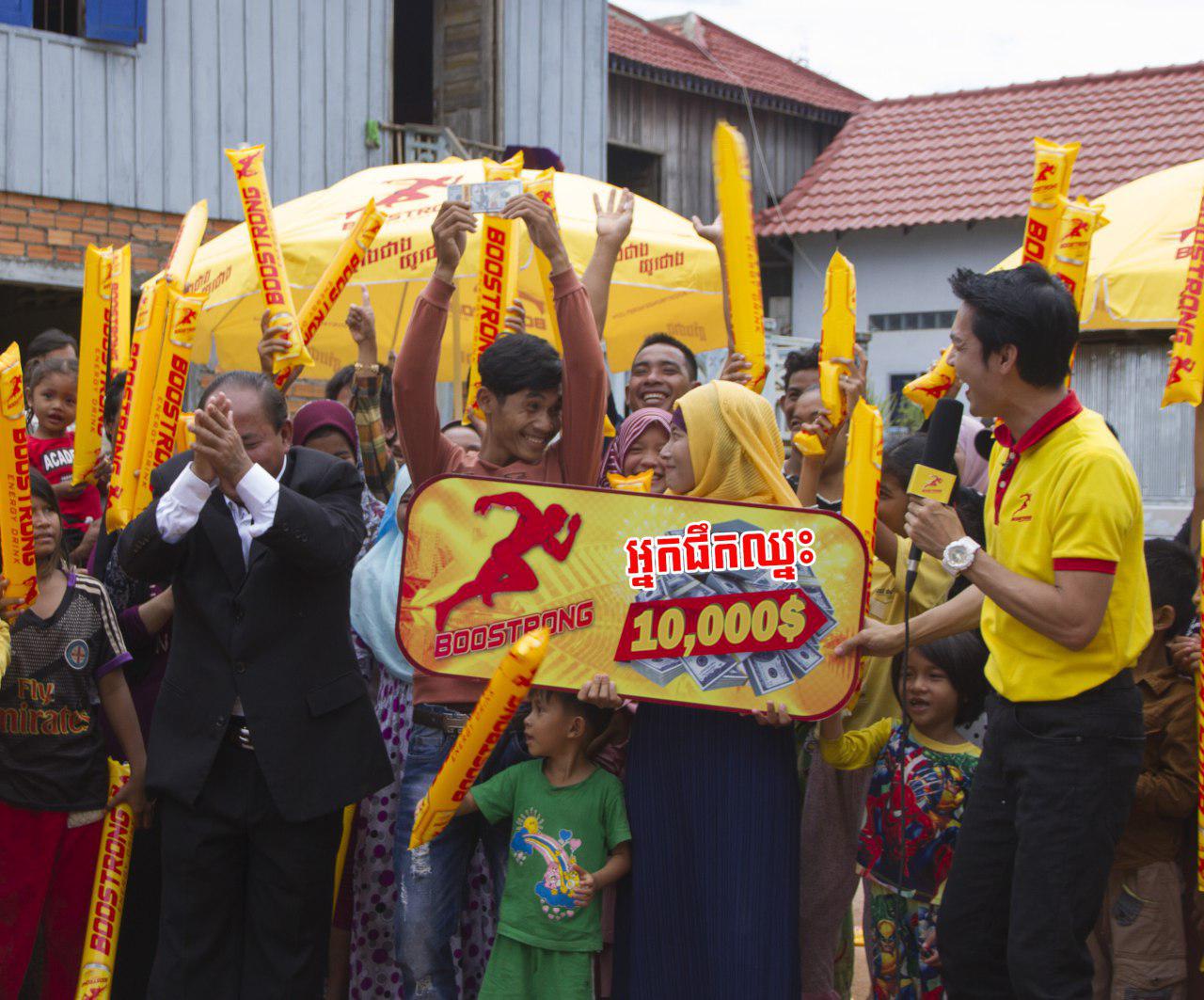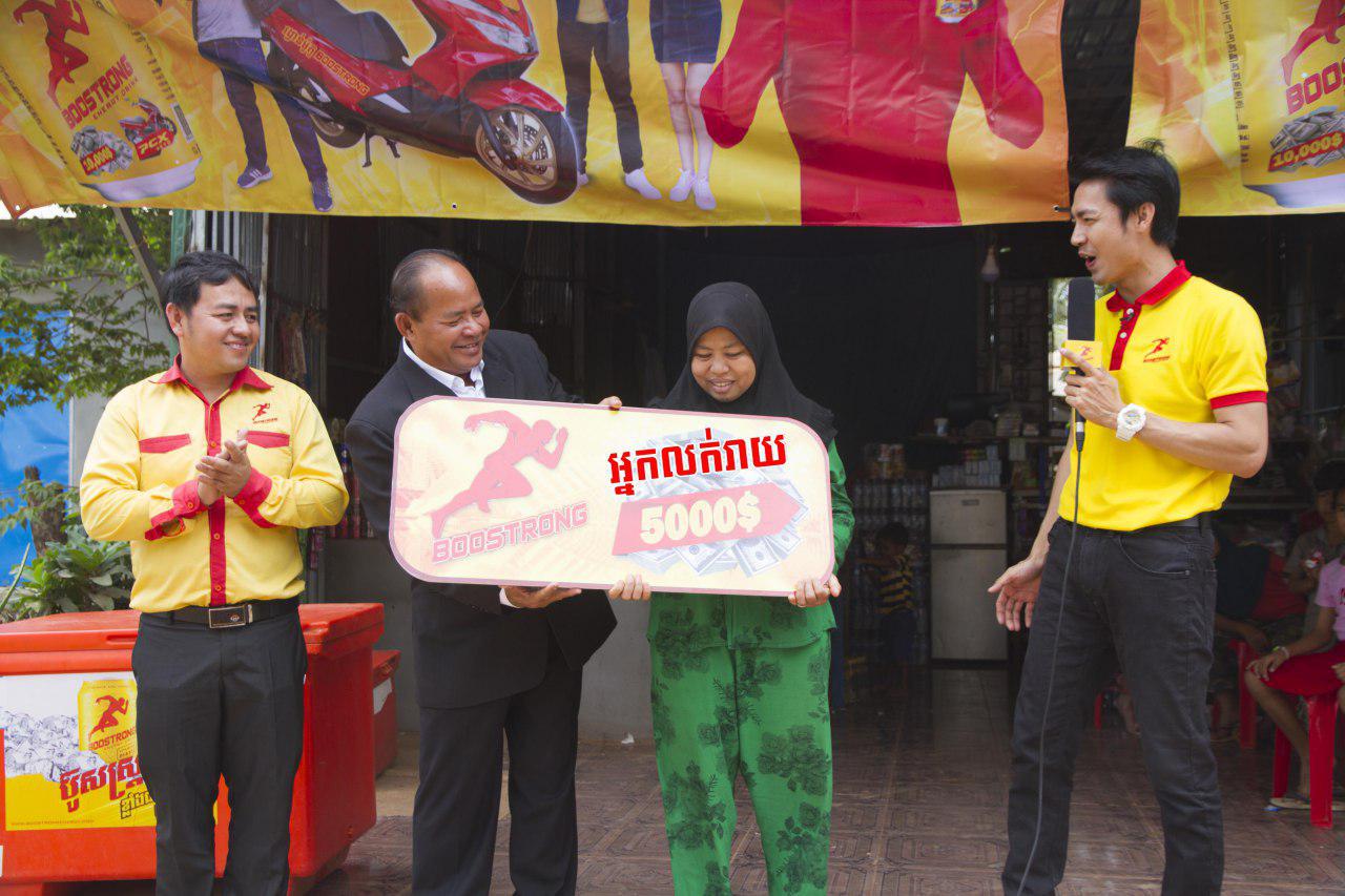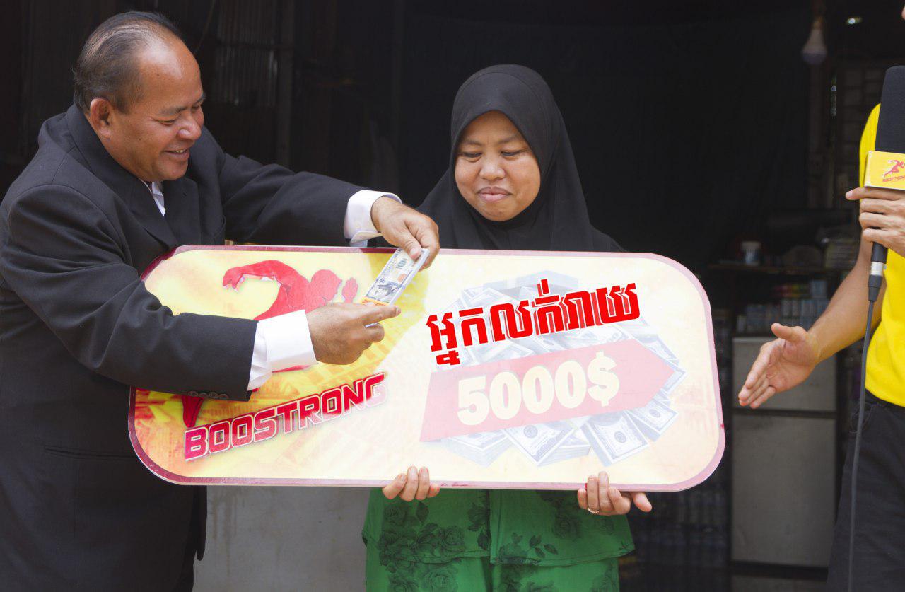 ស្ថិតក្នុងសំលៀកបំពាក់ជាជនជាតិឥស្លាមបងស្រី ស៊ីត ការីម៉ះ ជាអ្នកលក់ដូរចាប់ហ៊ួយបន្តិចបន្តួចនៅផ្ទះ ស្ថិតក្នុង ភូមិកំពង់ត្រឡាចក្រោម ឃុំកំពង់ត្រឡាច ស្រុកកំពង់ត្រឡាច ខេត្តកំពង់ឆ្នាំង។ បងស្រីជាស្រីមេម៉ាយ មានកូន២នាក់ និងម្ដាយចាស់ជរាម្នាក់ទៀតនៅក្នុងបន្ទុក បច្ចុប្បន្នគាត់កំពុងតែជួបបញ្ហាខ្វះខាតជាខ្លាំងនិងជំពាក់គេថែមទៀត។ ហើយថ្មីនេះគាត់បានយកភេសជ្ជៈប៉ូវកំលាំង ប៊ូសស្ត្រងទៅលក់ដើម្បីបានប្រាក់ចំនេញបន្ថែម ស្រាប់តែមានអ្នកលក់ត្រីម្នាក់ឈ្មោះ អ៊ីត ម៉ារីណាទិញប៊ូសស្ត្រងផឹកនៅផ្ទះគាត់ត្រូវរង្វាន់ 10,000$ ធ្វើឲ្យផ្អើលពេញមួយភូមិកំពង់ត្រឡាច តែគាត់មិននឹកស្មាន់ថាគាត់មានសំណាងបានទទួល 5,000$ ដែរនោះទេ។ ស្រាប់តែពេលក្រុមហ៊ុនយកលុយមកបើកឲ្យដល់អ្នកត្រូវរង្វាន់ហើយសួររកអ្នកលក់ដុំ និងអ្នកលក់រាយក្រុមហ៊ុនប៊ូសស្ត្រងក៏យកលុយ5,000$ មកប្រគល់ជូនគាត់ភ្លាមៗតែម្ដង ពិតជាត្រេកអររកអ្វីមកផ្ទឹមមិនបានឡើយ សម្រាប់ជីវភាពក្រក្សត់ដូចគាត់នេះ 5,000$ ពិតជាច្រើនណាស់។